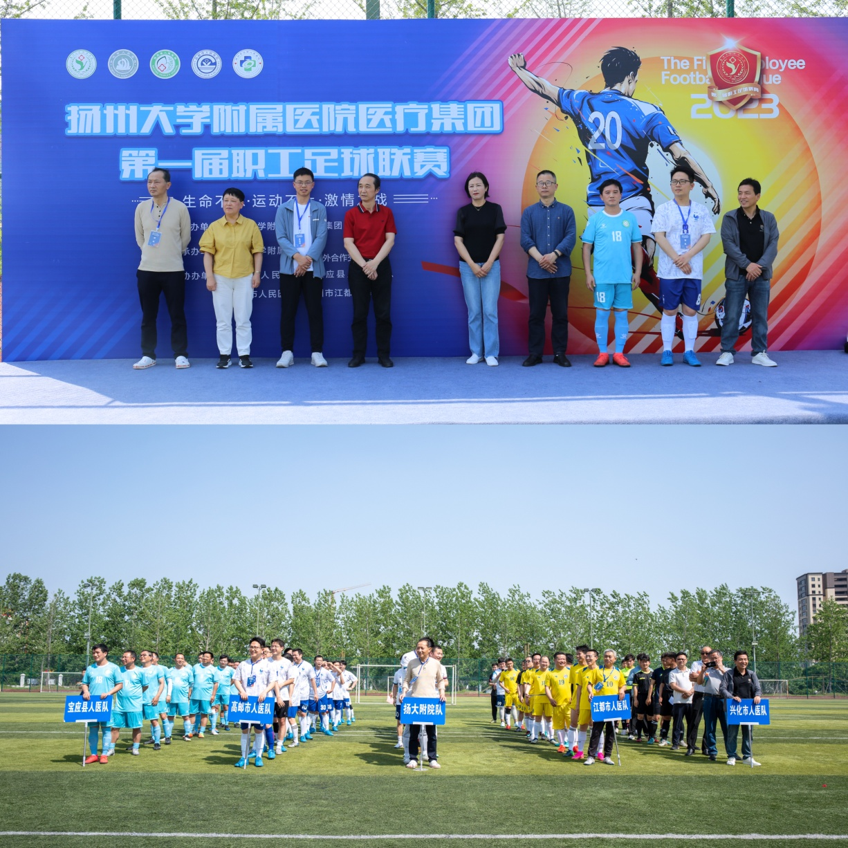 为庆祝“扬州大学附属医院医疗集团”(以下简称“医疗集团”)成立一周年,加强医疗集团各成员单位之间的交流与合作,增强职工身体素质,使大家能以更加饱满的体力和精力投入到医疗集团的各项工作中去,经过精心的策划与筹备,由医疗集团主办,院工会、院对外合作交流处承办的主题为“集团英豪聚、妙手惠民共推高质量 绿茵英姿显、健足腾跃同上新平台”“扬州大学附属医院医疗集团第一届职工足球联赛”于2023年5月14日下午在扬州市国防园足球场拉开了帷幕!