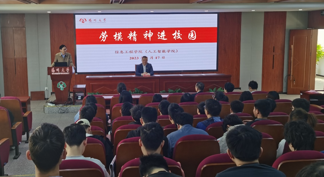 4月17日上午,信息工程学院(人工智能学院)开展“劳模精神进校园”活动,易事特集团董事长、学院兼职教授何思模教授应邀来院作题为《数字能源技术创新助力经济高质量发展》的专题讲座。院党委书记吕红梅、院长孙小兵出席活动,院党委副书记崔益军主持讲座。