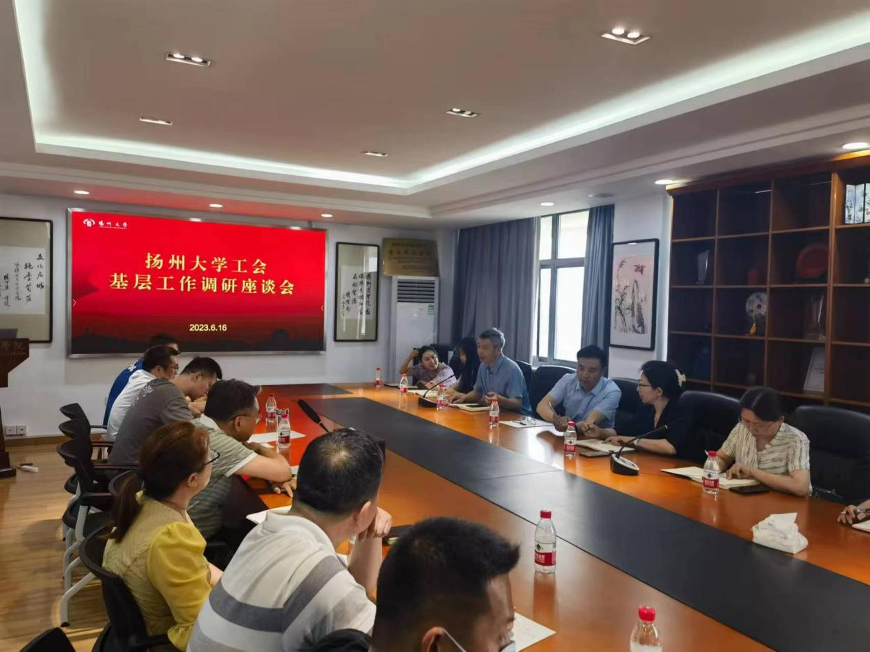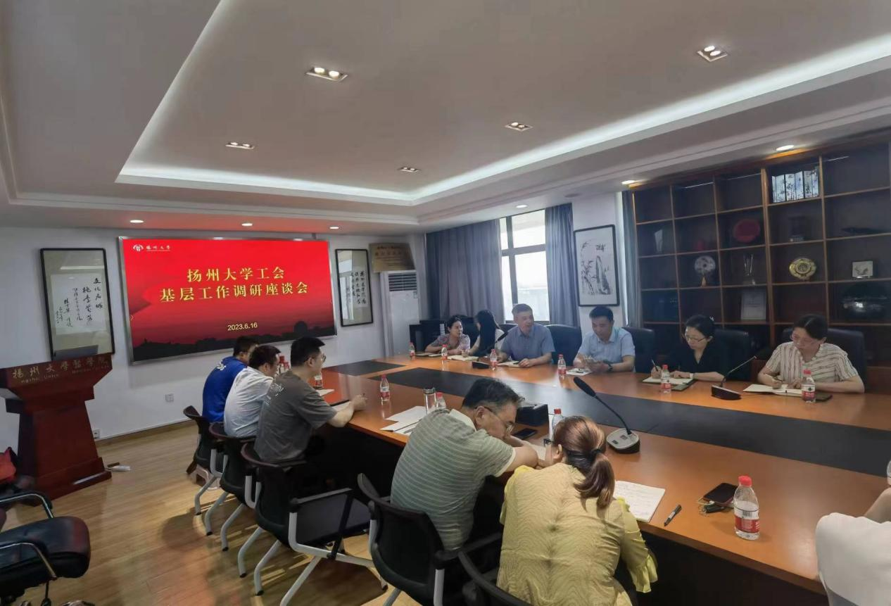 2023年6月16日下午4:00,扬州大学工会在江阳路北校区医学院19号楼810举行扬州大学工会基层工作调研座谈会(江阳路北校区)。扬州大学工会主席洪岑、副主席高静等出席会议。机关党委、马院、水利学院、园艺学院、医学部、医学院、护理学院·公卫学院、美设学院、海外学院、资产公司、农牧场、广陵学院等各二级工会主席及各二级工会青年教师参加了座谈会。大家从校区建设、模范教工之家建设、工会活动开展、工会管理能力培训、青年教师发展、活动场所开放、体育设施补充更新、教工子女入学等多个方面谈了自己的想法,提出了一些合理化建议,受到与会人员的热议。洪岑主席最后提出希望:1.工会工作要更加规范;2.创新工作方法,走到教师身边,做大家的朋友,为大家做好服务;3.工会工作者要做教职工的贴心娘家人。此次座谈会深入基层一线,倾听青年教职工的心声,取得了良好效果,达到了预期目的,有助于在今后更好地开展工会的各项工作,凝聚人心,为建设高水平研究型大学做出贡献。