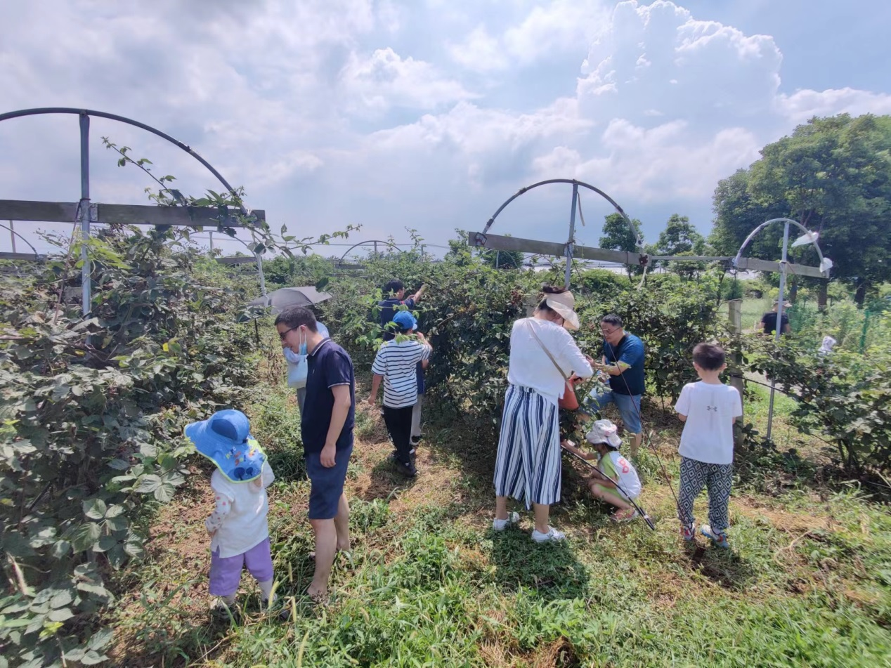 在八一建军节到来之际,扬州大学建工学院在仪征黑莓农场基地开展了“一杯美酒解忧愁,一腔热血写春秋”青年教师亲子采摘主题活动。