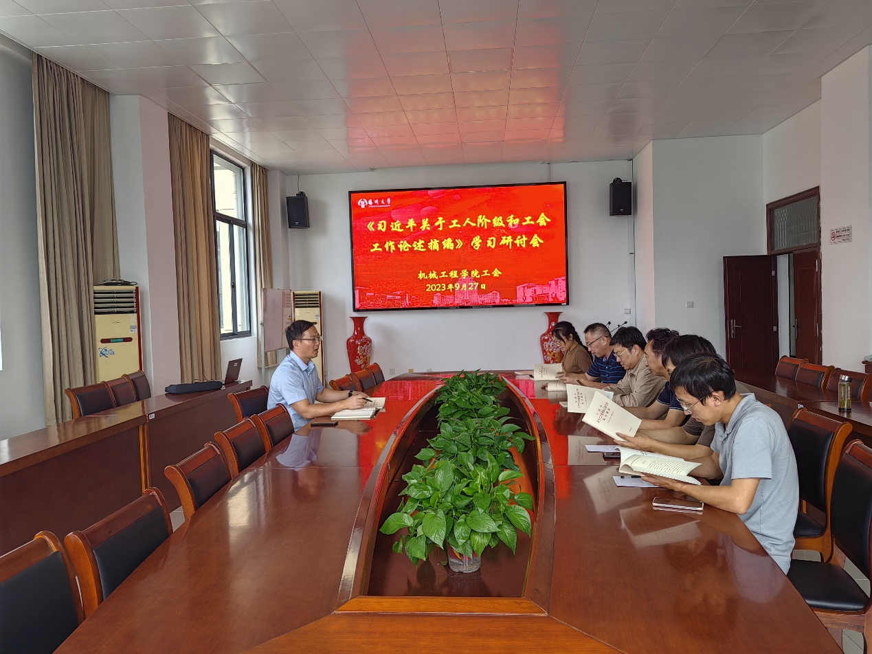 9月27日下午,机械学院工会召开学习会,认真学习了《习近平关于工人阶级和工会工作论述摘编》,院党委副书记毕亮主持学习会,全体工会委员参加学习。