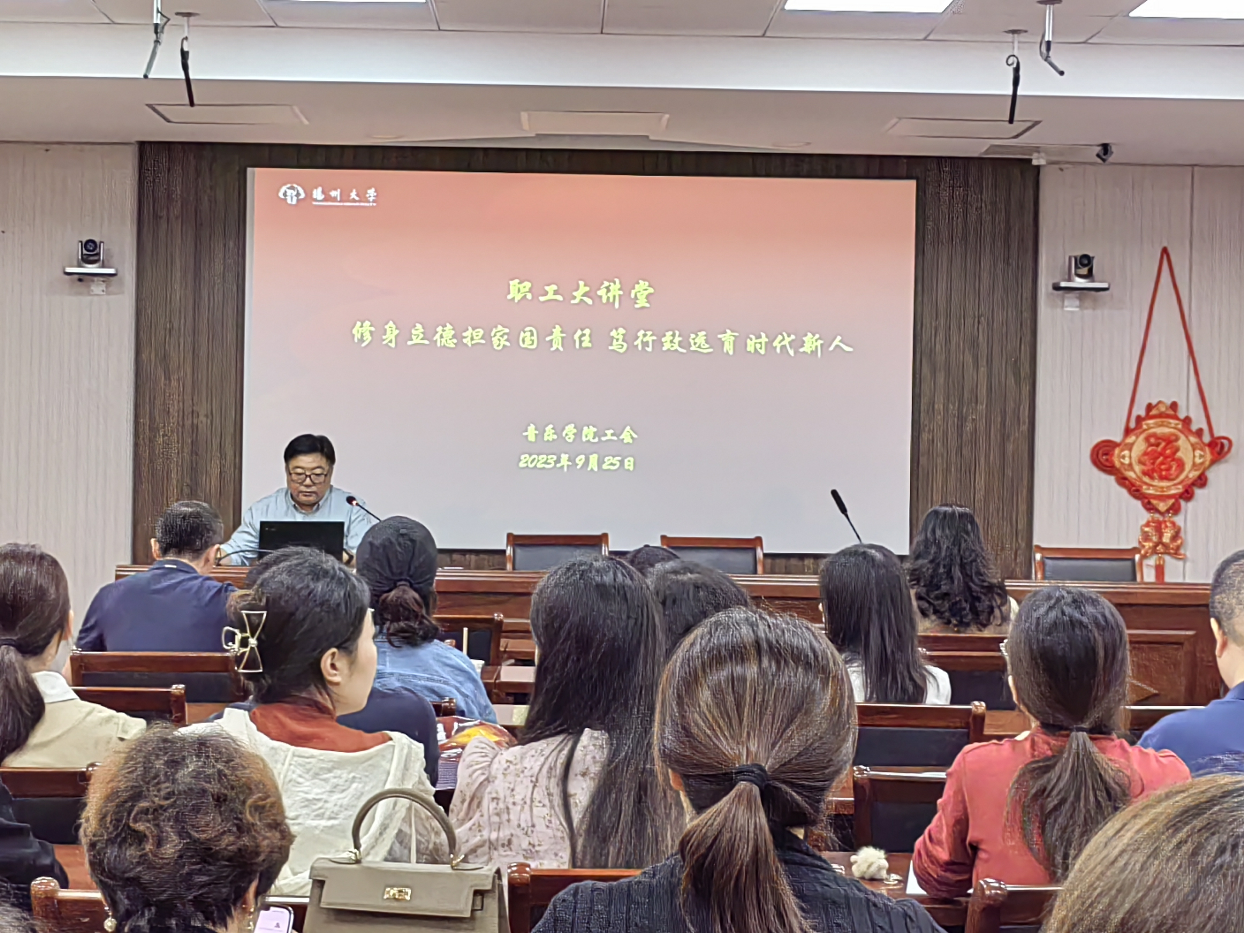 9月25日,音乐学院工会在学院美学堂举办职工大讲堂专题讲座活动,此次讲座由学院党委书记房东升主讲,学院全体教职工参加了此次活动。