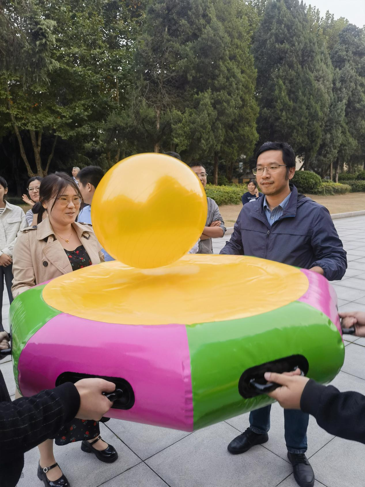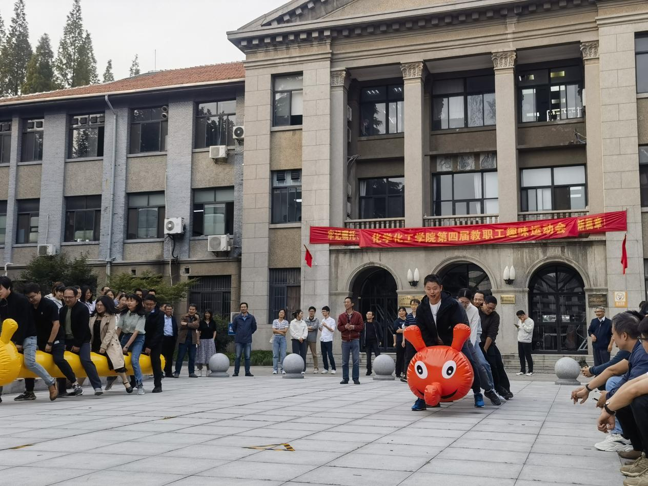 为丰富教职工业余文化生活,增进工会会员间相互交流与学习,迎接校教职工趣味运动会,10月11日下午,化学化工学院(创新材料与能源研究院)工会组织全院教职员工在瘦西湖校区15号楼前举行了院第四届趣味运动会。