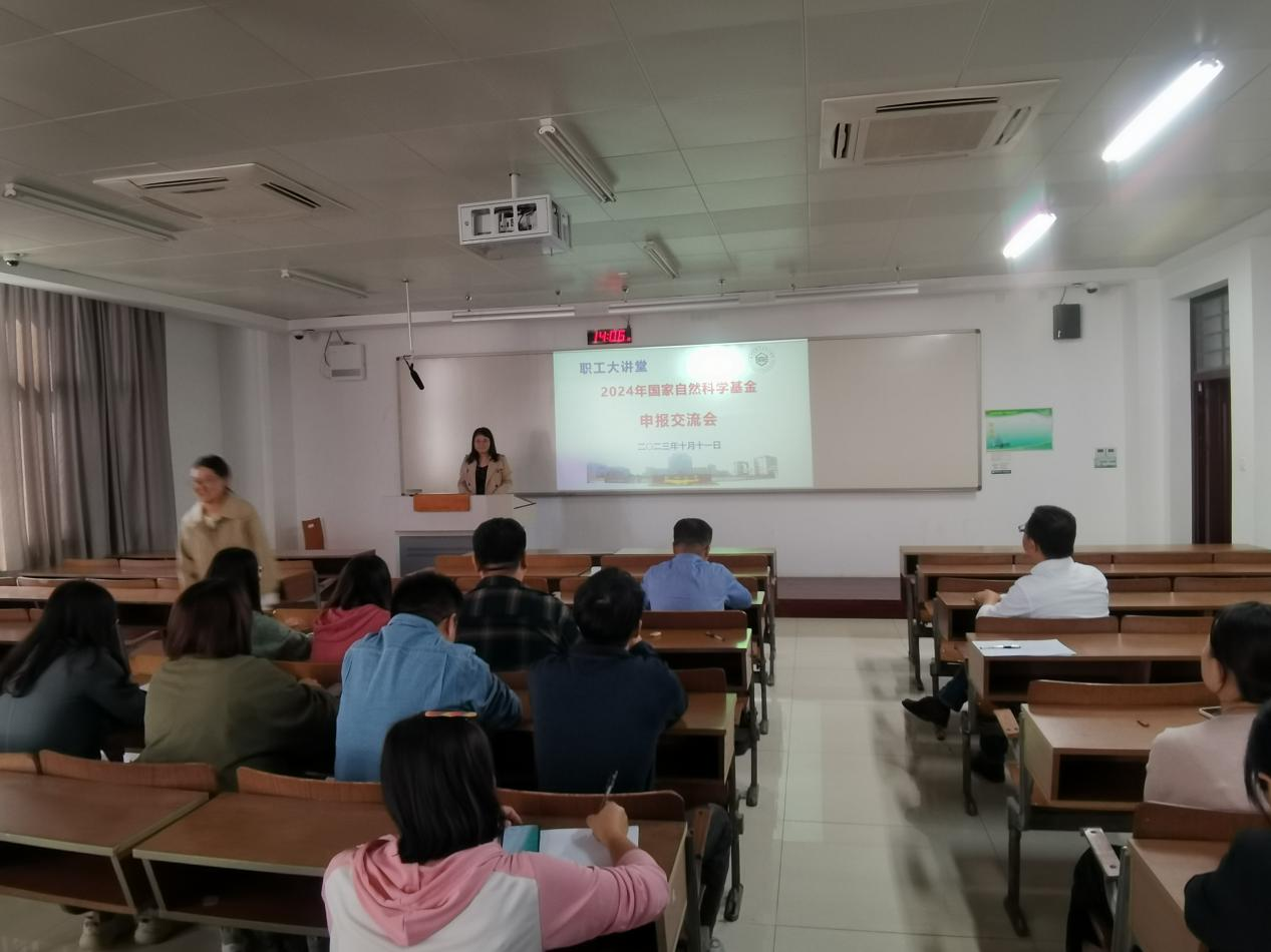 2023年10月11日,化学化工学院在瘦西湖校区8号楼S209教室召开“2024年国家自然科学基金申报交流会”职工大讲堂,邀请2023年度获得国家自然科学基金的各位老师分享成功申报基金的经验,全院新进教师及感兴趣的教师参加了本次职工大讲堂。会议由化学化工学院吴德峰副院长主持,创新材料与能源研究院徐琴院长出席会议。