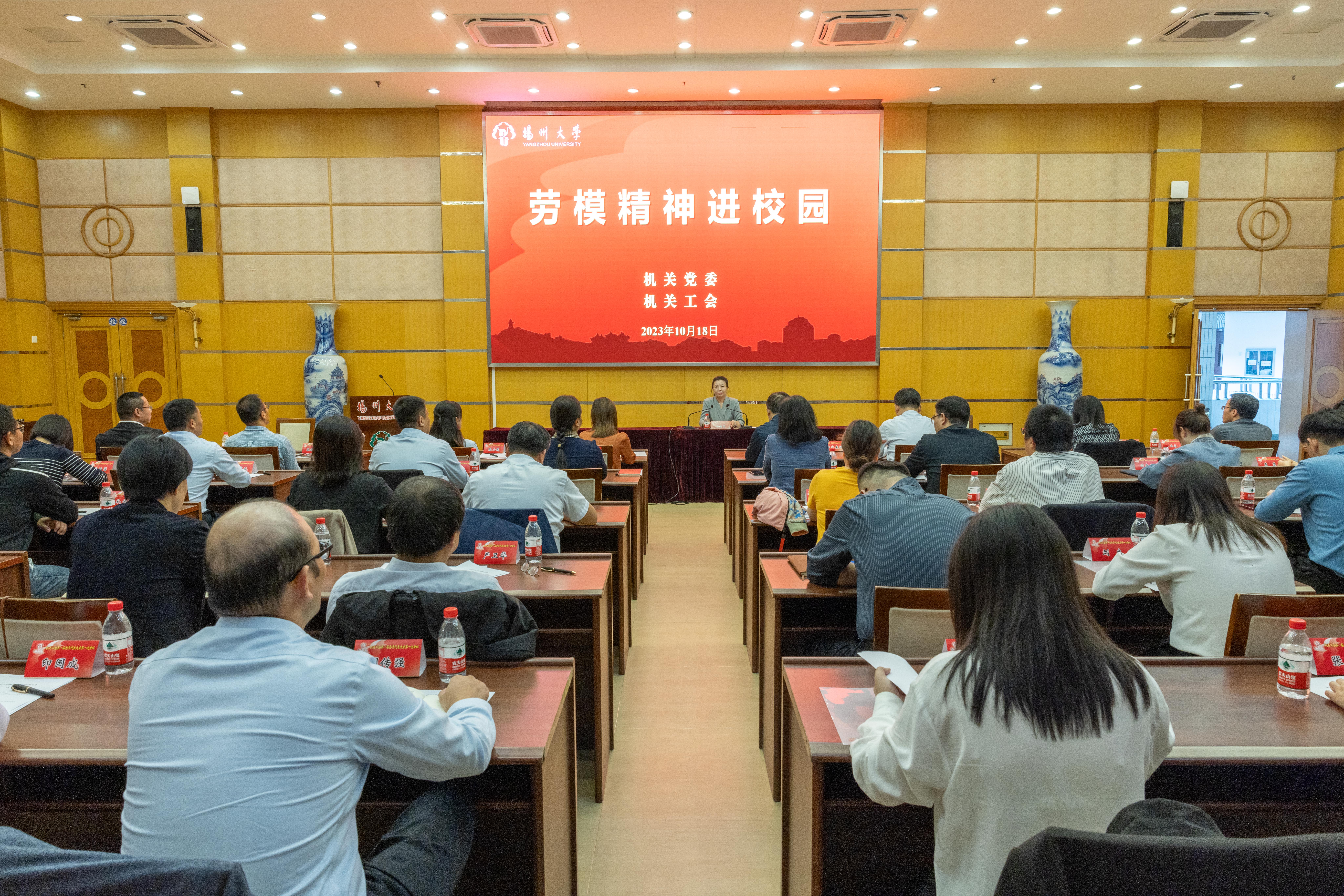 为发挥劳模工匠的示范引领作用,大力弘扬劳模精神、劳动精神、工匠精神,推动形成“建功新时代、比学赶帮超”的新风尚,近日,机关工会开展了“劳模精神进校园”活动,全体机关工会会员代表和各部门教职工代表参加活动。