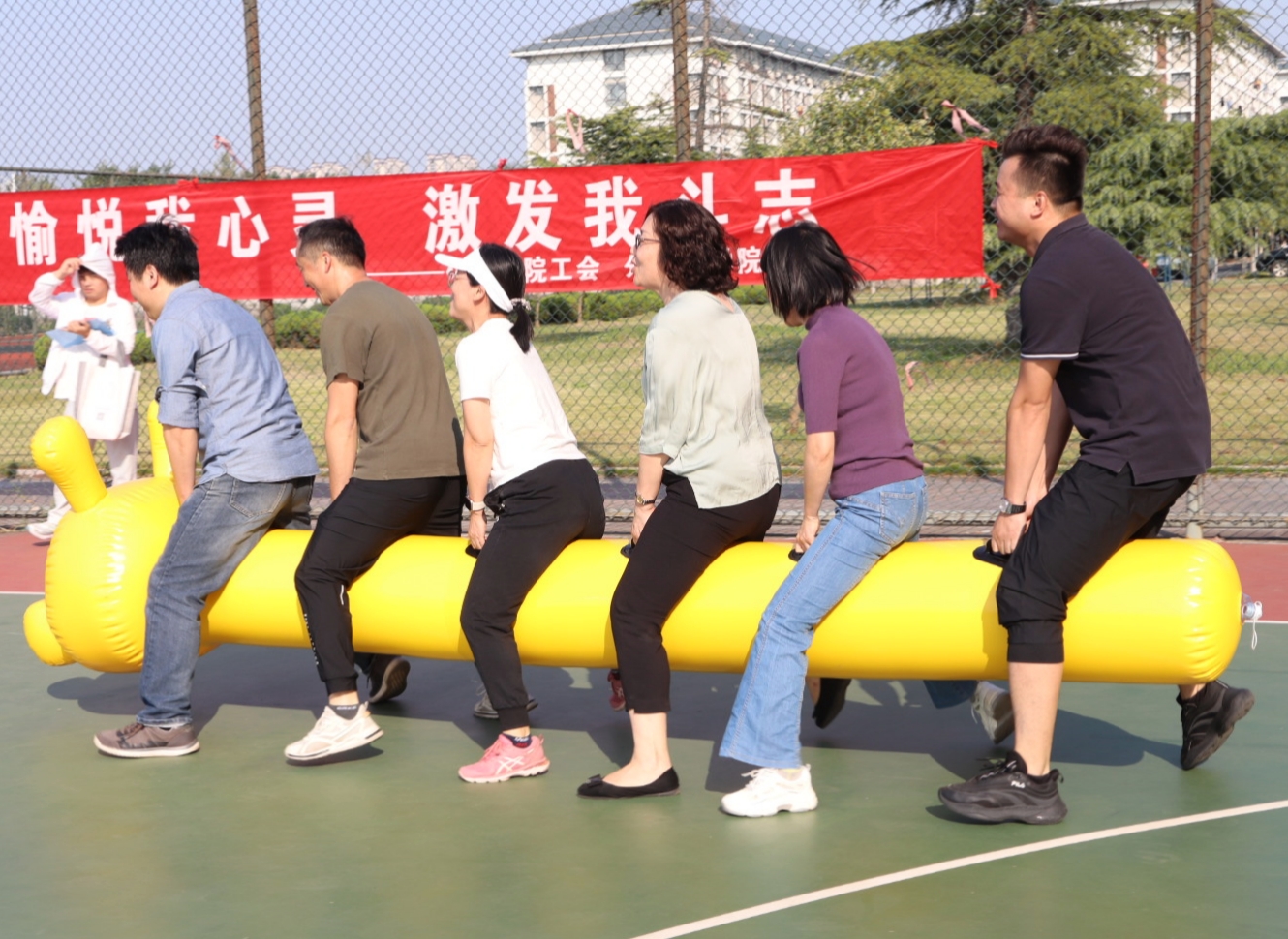 人间忽迎秋风至,挥洒汗水品雅趣。10月18日下午,外国语学院工会和体育学院工会联合举办的教职工趣味运动会在扬子津校区文体馆北侧篮球场举行。外国语学院党委书记居学明出席活动,体育学院党委书记虞强致开幕词,校工会副主席高静出席活动并宣布运动会开幕,体育学院导师高宝龙主持活动。