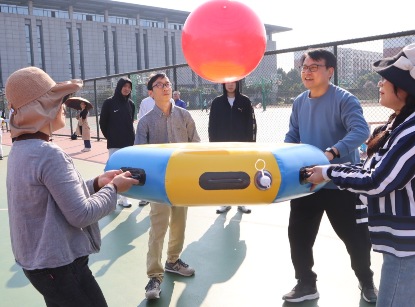 体育学院党委书记虞强指出,本届趣味运动会旨在让老师们在紧张繁忙的工作之余,走出教室,走出实验室,增进交流和促进友谊。值得注意的是,这次趣味运动会文体融合,外国语学院和体育学院的联合可以称得上是动静相宜、刚柔并济,运动的多彩魅力让他们汇聚在赛场上,一起赛出友谊,赛出团结,赛出昂扬向上的精神风貌!增强了教职工之间凝聚力和向心力,以更加舒畅的心情投入到未来的教学和科研工作之中。