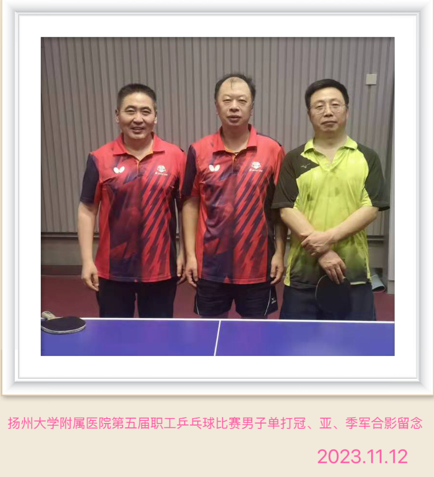 祝贺获奖运动员们!今天的比赛也是为下周即将参加的扬州大学第二十三届教职工乒乓球赛进行了一次热身赛,希望队员们在接下来的比赛中发挥出最好的水平,争取取得好成绩!