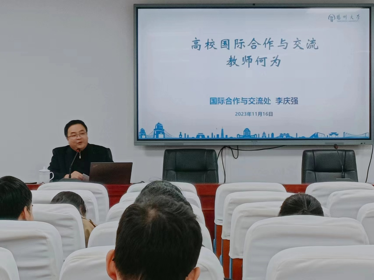 11月16日,数学科学学院开展“职工大讲堂”活动,邀请国际合作与交流处副处长李庆强为我院教师作了题为“高校国际合作与交流教师何为”的专题报告。院党委郭丽书记主持了报告会,学院中青年教师参加了活动。