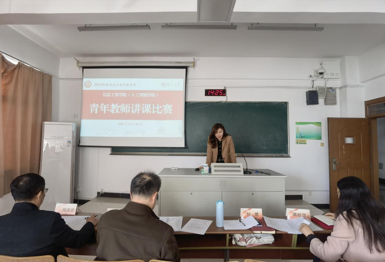 11月22日下午,我院在文津楼N510举办青年教师讲课比赛。刘维、葛桂萍、徐明、陈宏建四位经验丰富的教师担任评委。林云霞、吴海舟和翟婷婷三位青年教师参加本次比赛。