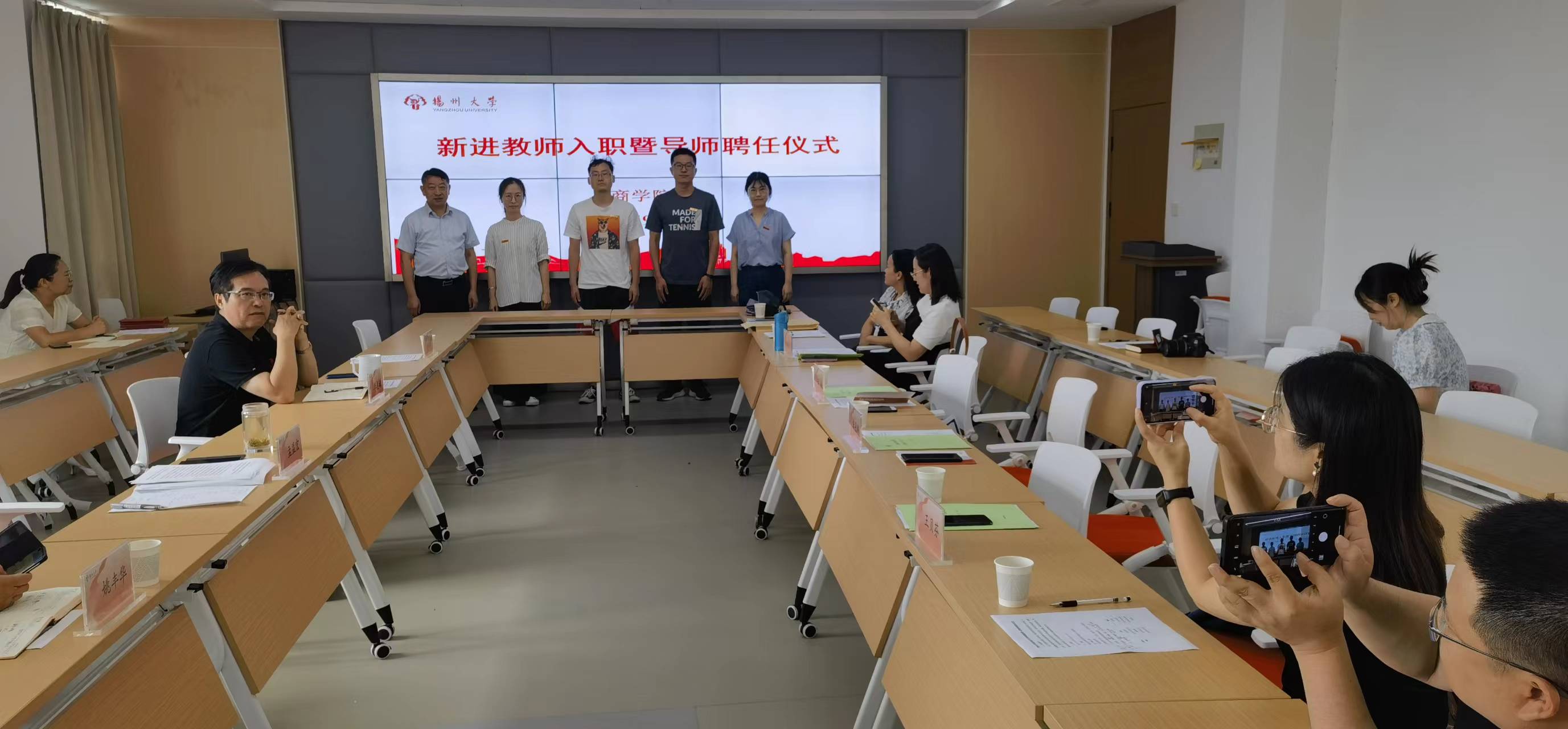 新进教师分别发表了入职感言,纷纷表示将在学院党政领导下努力工作,为学院建设添砖加瓦。参会院领导为新进教师佩戴校徽,为导师颁发聘书。