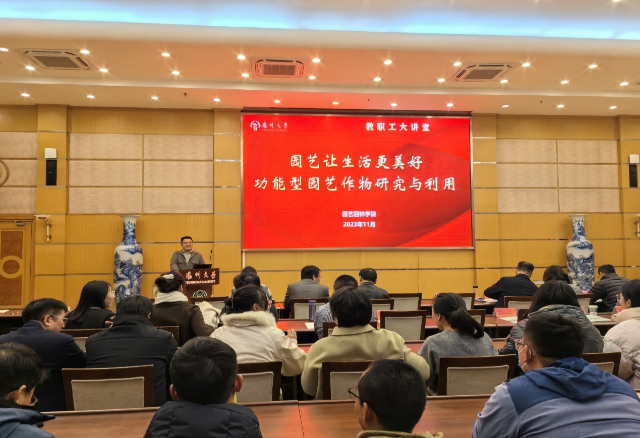 11月29日下午,园艺园林学院工会举办“园艺让生活更美好——功能型园艺作物研究与利用”职工大讲堂活动。园艺园林学院教师王莉、许学文、吴鹏,食品学院阚娟、千春录、刘俊,生技学院张顺仓、周萍萍为汇报人,园艺学院书记李卫星、院长冯立国,生技学院院长黄金林,食品学院院长杨振泉,学院教职工及研究生参加本次活动。