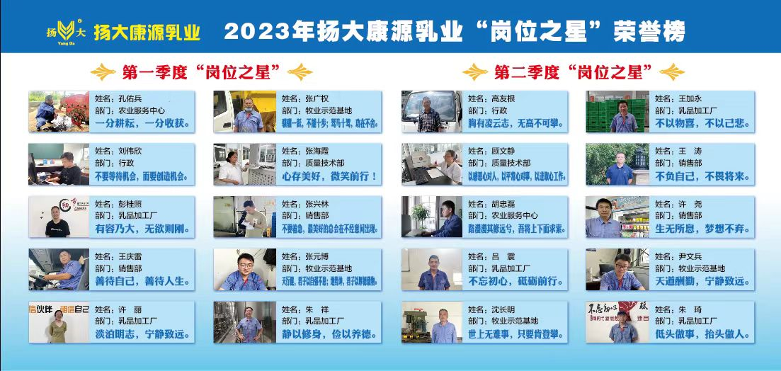 本次活动覆盖全场全体职工,着重关注一线部门职工。按照工作实绩、职工公认、好中选优的原则,每个季度从全体职工中精准推选“岗位之星”,通过在场区内树立展牌、在农牧场官网循环播放“岗位之星”风采等方式,真正把在各部门表现优异的职工评选为先进典型,树立可学可做、可追可及的榜样,营造新时代新征程上你追我赶的工作氛围。