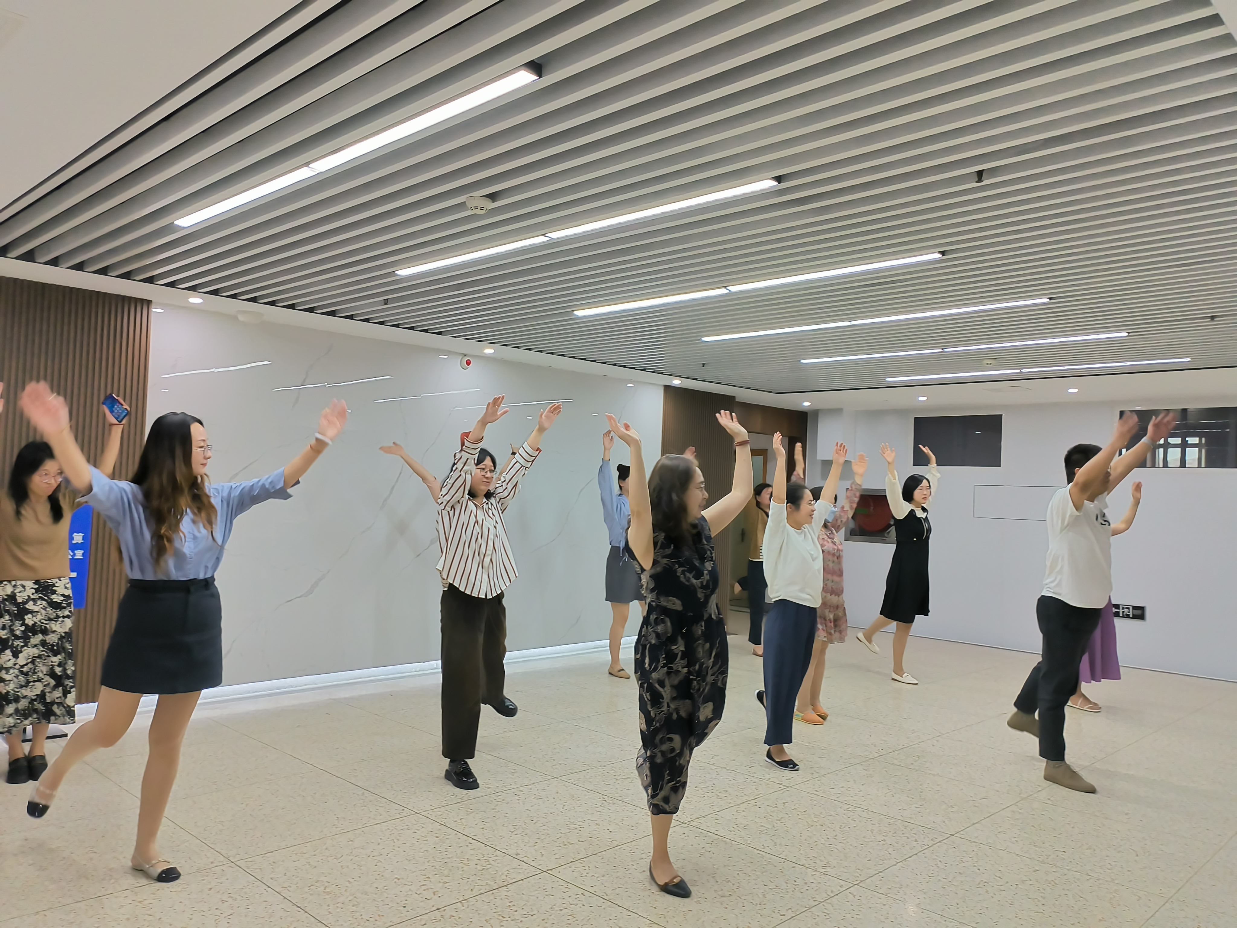 为进一步提高教职工强身健体意识,以健康的体魄和充沛的精力投入到工作中,本学期海外教育学院工会组织本院教职工,并邀请机关工会下属继续教育处和国际合作与交流处的教职工,共同学习推广第九套广播体操,开展工间锻炼活动。