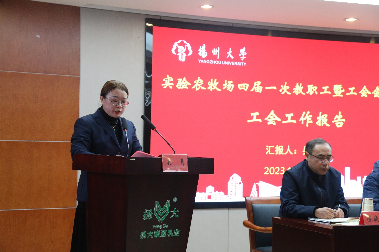 大会在庄严的国歌声中拉开帷幕。校工会主席洪岑对大会的召开表示热烈祝贺,对实验农牧场三年来工作所取得的成绩表示充分肯定,对实验农牧场工会下一阶段工作作出指导。