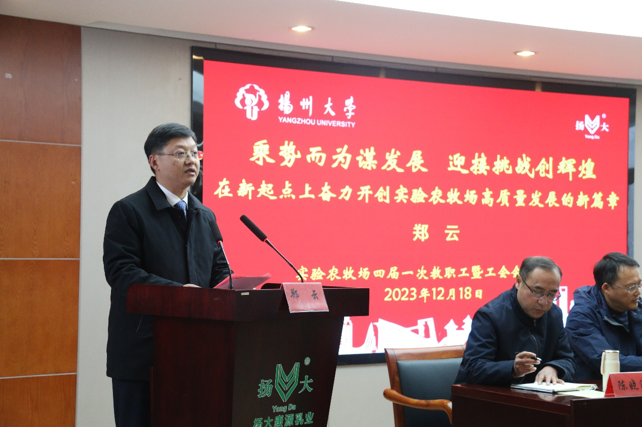 12月18日下午,实验农牧场在食品园场区科技报告厅召开第四届教职工大会暨工会会员大会第一次会议。校党委常委、副校长赵文明,校工会主席洪岑出席会议。实验农牧场全体领导出席会议,党总支书记马雷主持会议。