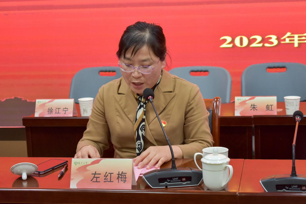 会议由院党委副书记左红梅同志主持,学院党政领导班子全体成员、院七届工会委员、新当选的第八届工会委员及全体教职工参加会议。