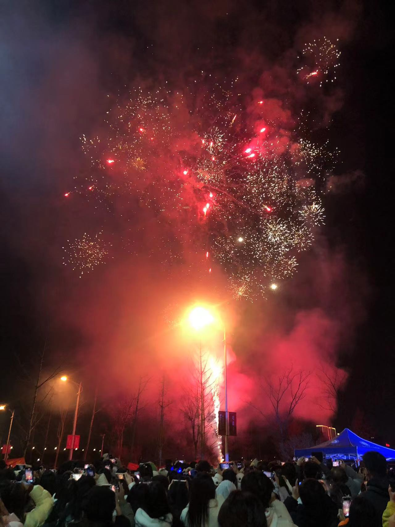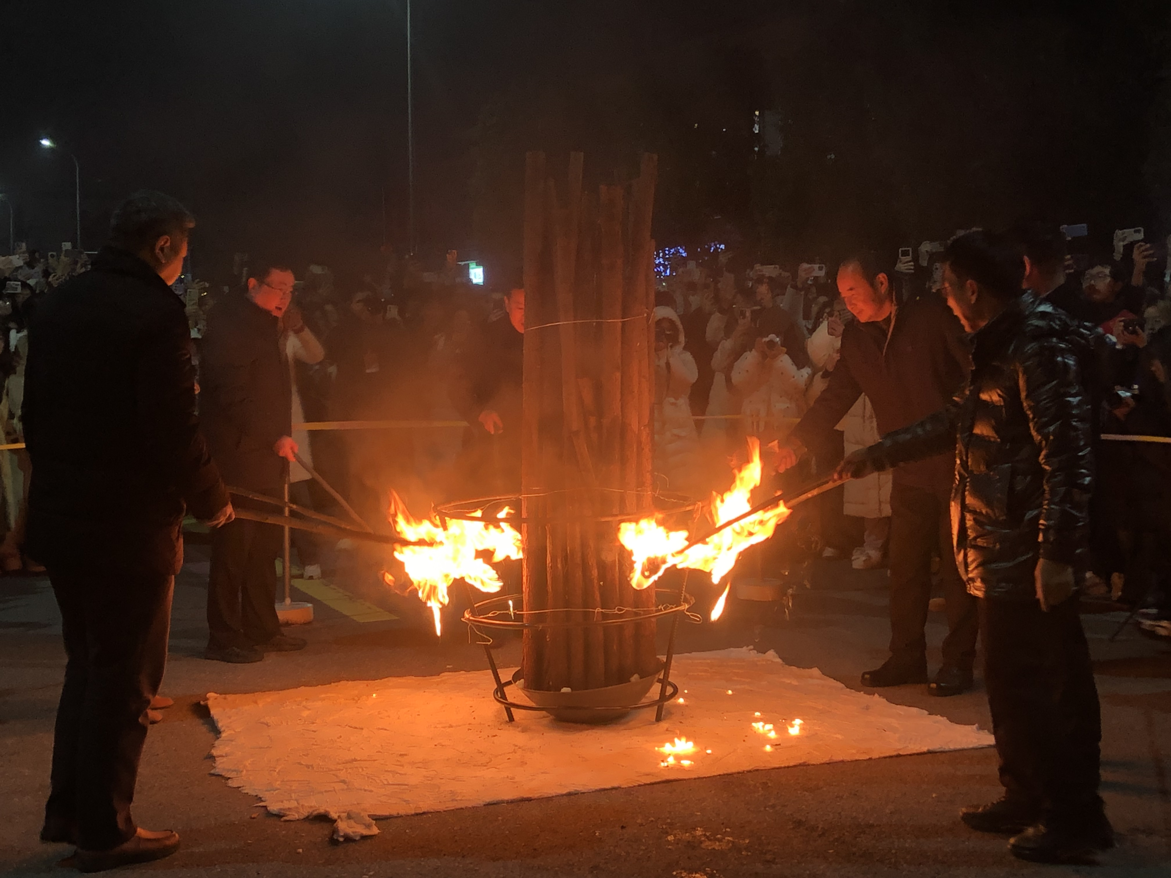 院长凌云志首先预祝全体广陵人元旦快乐、阖家幸福。祝福全体学生孜孜求索、学业有成。开幕式后所有院领导点燃篝火,师生们围绕着篝火转起来、跳起来,挥舞的双手与舞台柔和的灯光交汇。随着一声巨响,五彩缤纷的烟花飞舞将晚会推动了一个高潮。