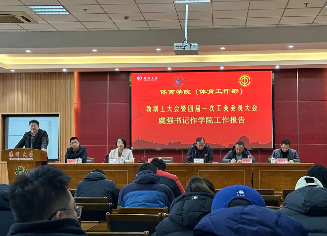 会议在嘹亮的国歌声中开幕,大会首先认真听取和通过了由院党委书记虞强代院长作题为《团结奋斗,兴体行健,实现高水平研究型体育学院建设新突破》的学院工作报告。
