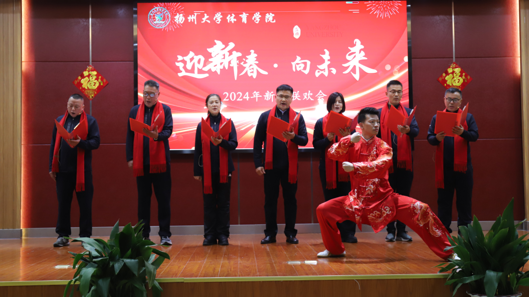 1月14日下午,由体育学院工会主办的体育学院“迎新春·向未来”新年教工联欢会在扬子津文体馆顺利举行。全体院领导和教职工参加了活动。