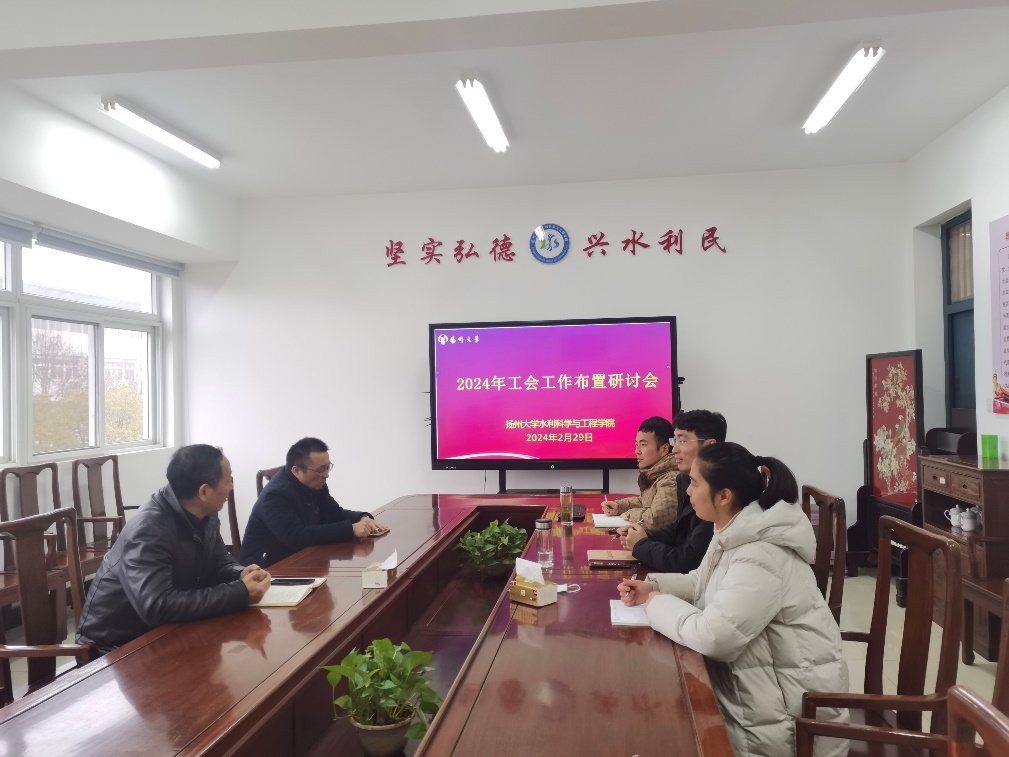 王拓主席首先回顾了2023年的工会工作以及所取得的成绩,随后讨论布置了2024年的工会工作要点。会上王拓强调要时刻围绕让全体教职工成为“幸福扬大人”的工作主旨,全方位全过程维护教职工合法权益,竭诚服务教职工,发挥工会组织联系职工的桥梁和纽带作用,要凝心聚力,围绕工会工作全局,结合学院工作实际,与时俱进,创新思想,为推进学院高质量发展贡献更大力量。随后全体委员讨论了学院上半年工会主要工作计划及具体安排,重点围绕筹备召三八妇女节活动相关事宜展开讨论。