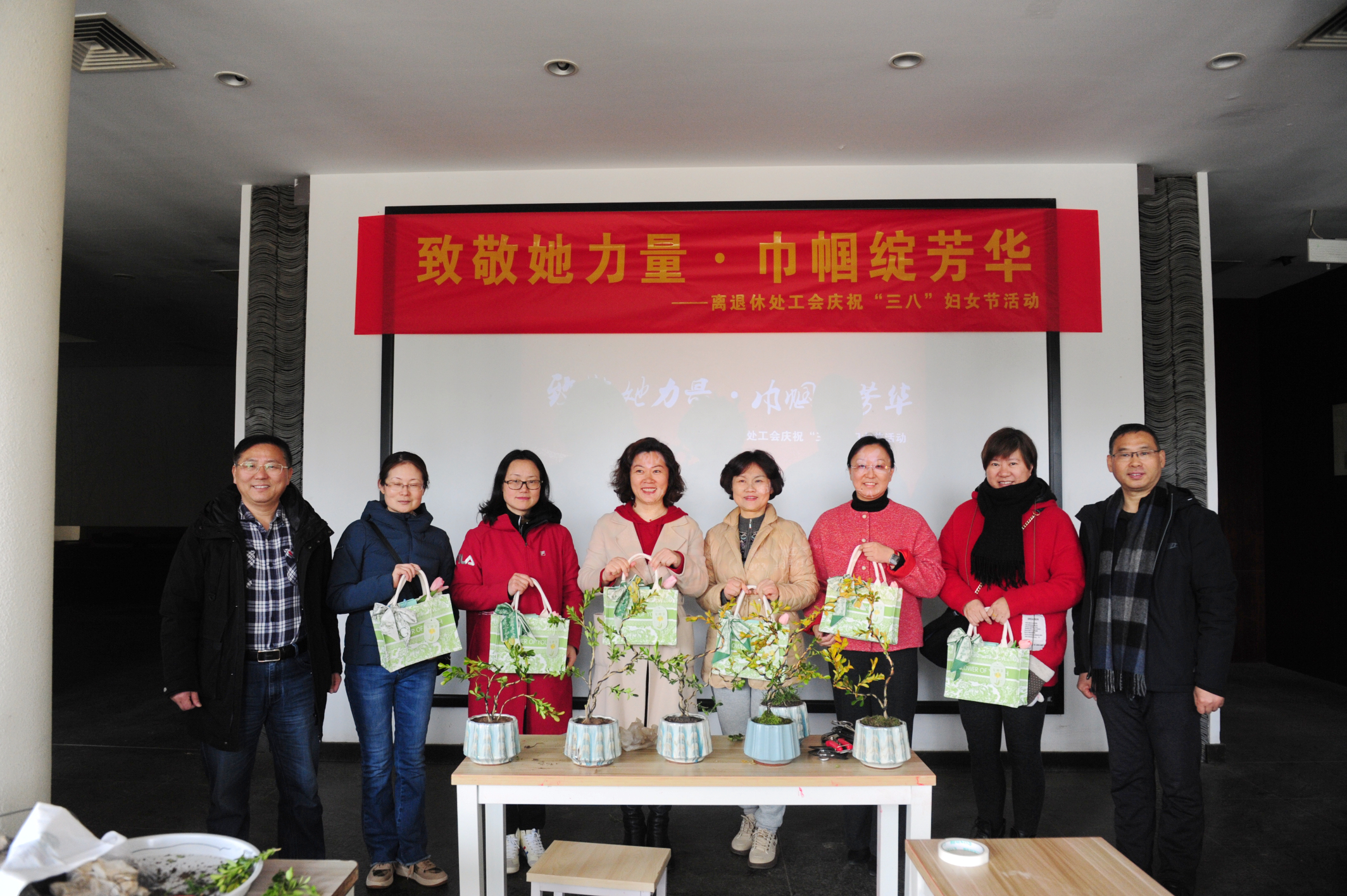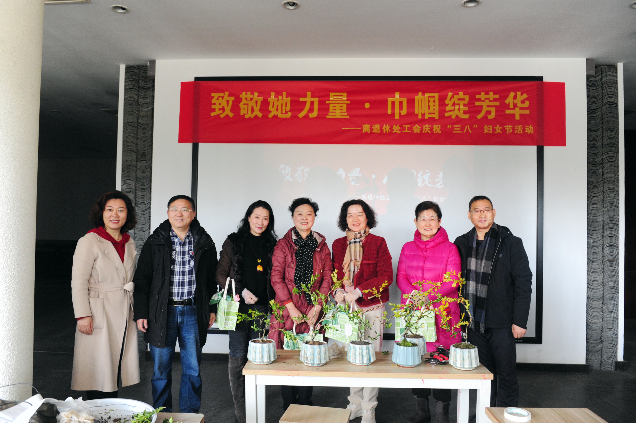 为庆祝第114个“三八”国际劳动妇女节,离退休处工会于3月7日上午在扬州市扬派盆景博物馆内举办“致敬她力量·巾帼绽芳华”主题活动。全体在职女同胞、老干部艺术团女骨干代表参加活动。处班子成员及工会男委员代表应邀出席活动。