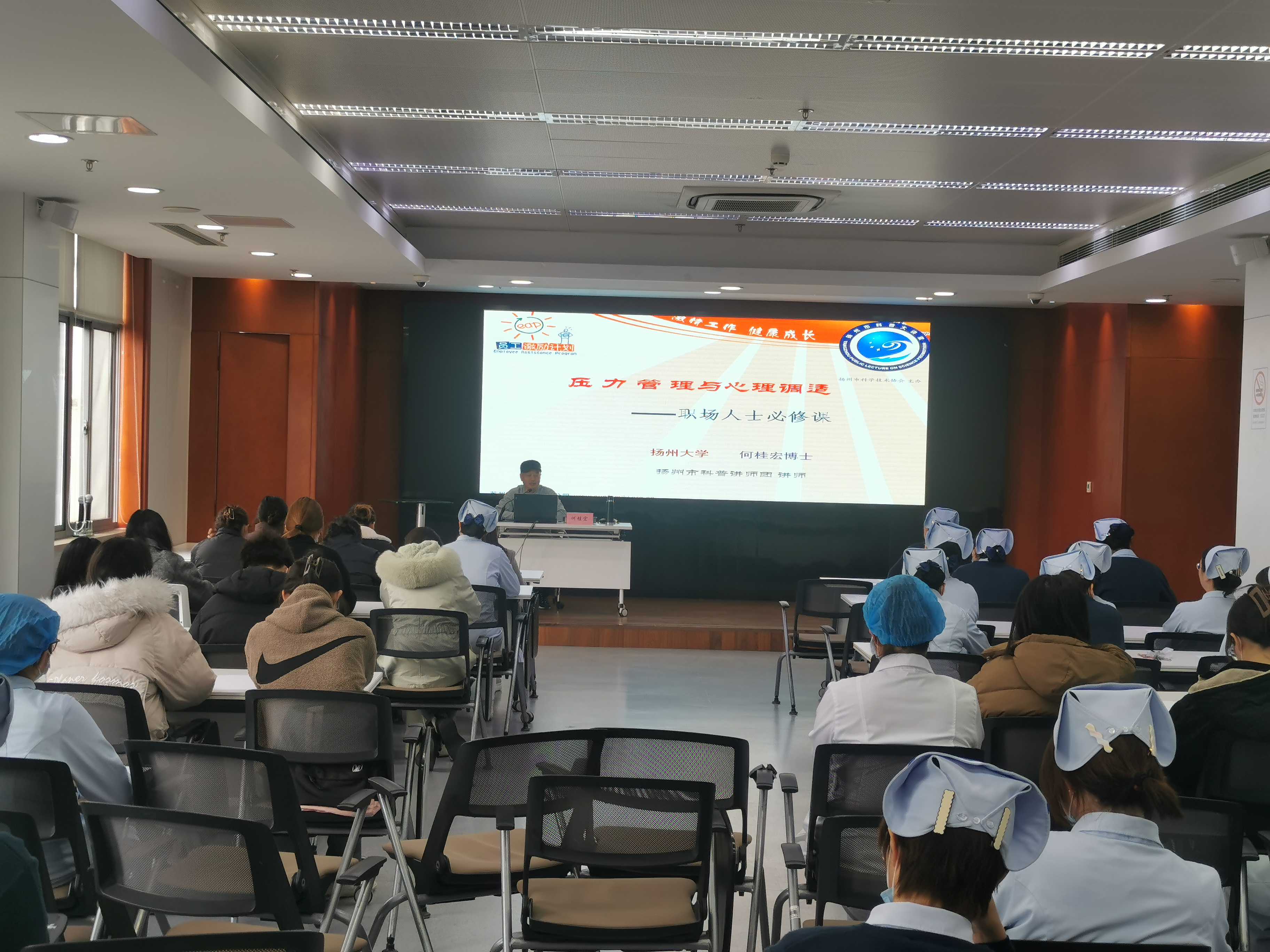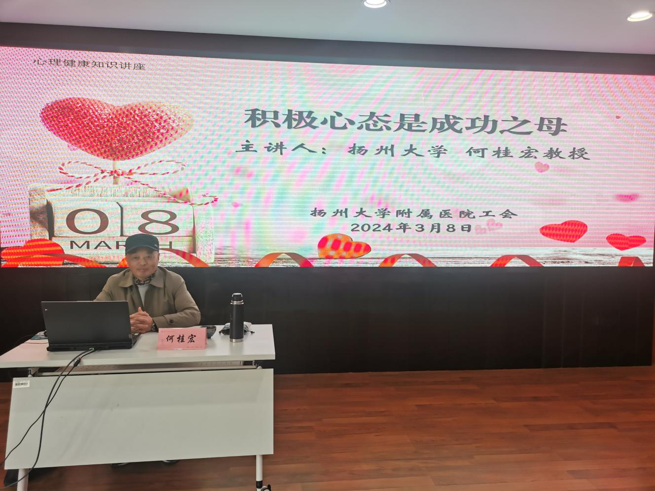 3月8日下午,扬州大学附属医院举办了主题为“积极心态是成功之母”的心理健康知识讲座。本次讲座由院工会·女职工委员会主办,主讲人为扬州大学教科院心理学副教授何桂宏,来自全院各科室的60多名职工参加了本次讲座。