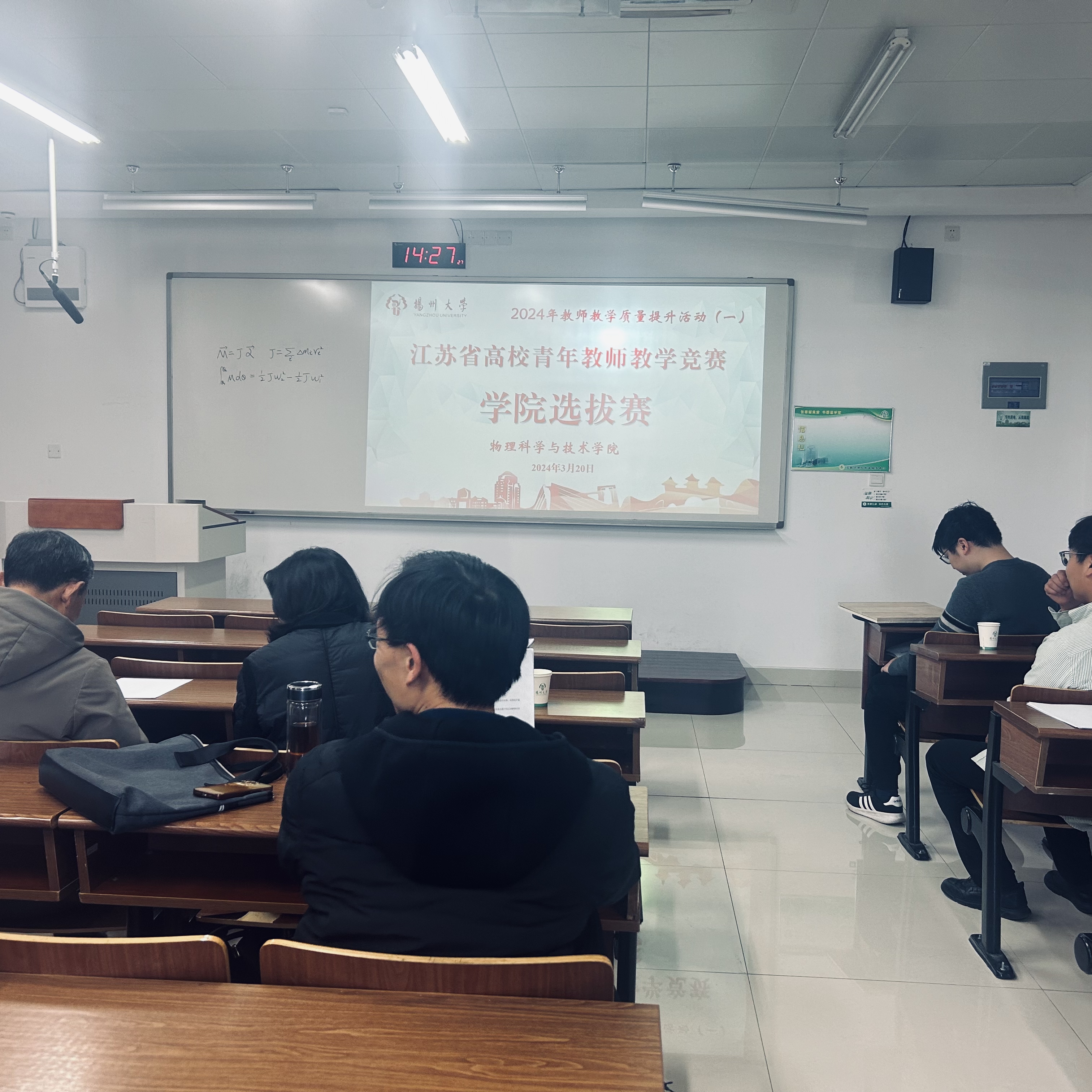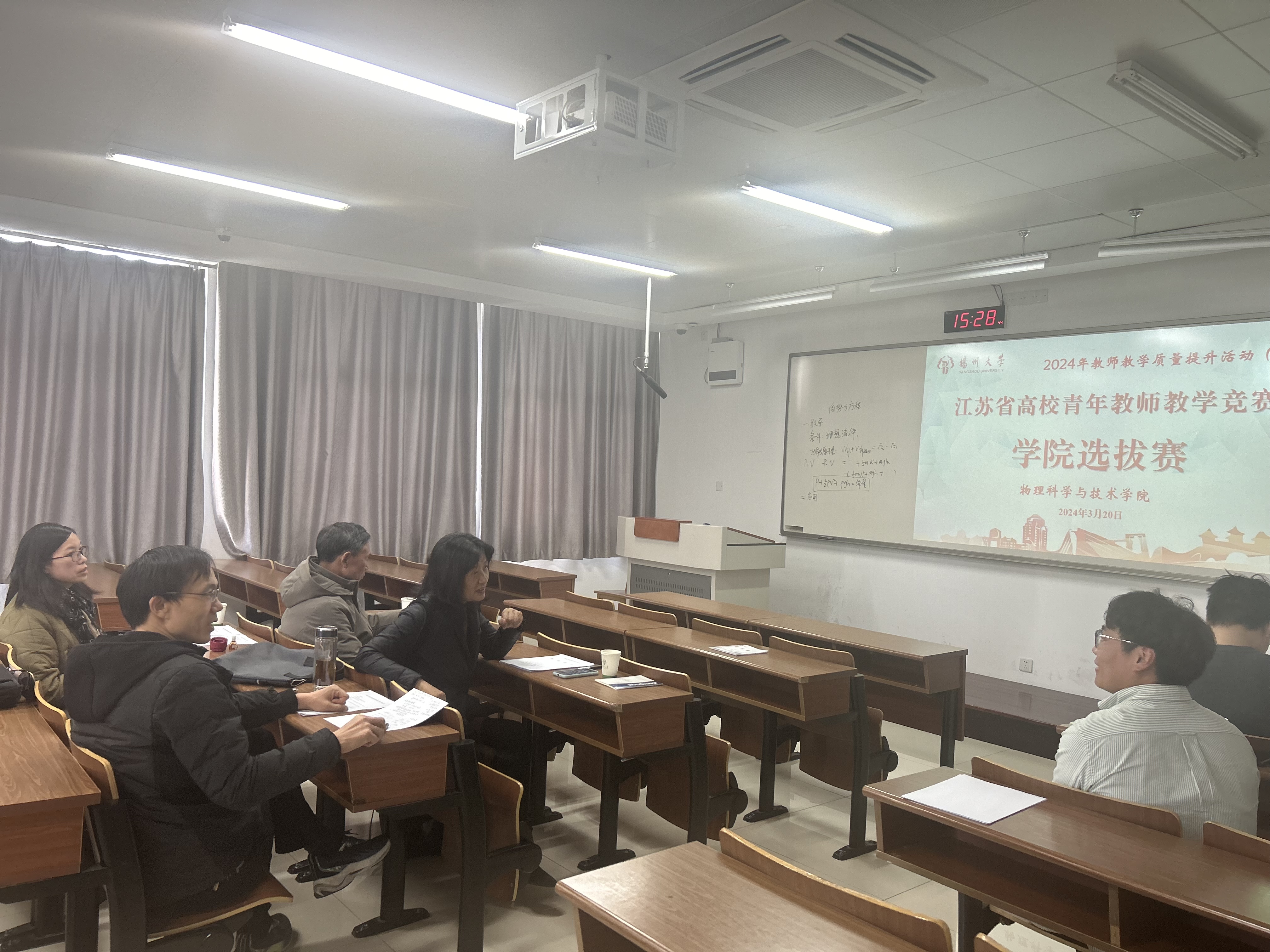 3月20日下午,物理科学与技术学院工会以组织开展第五届江苏省高校青年教师教学竞赛为契机在学院内部举办了青年教师讲课比赛。副院长王伟、院工会主席陈海涛及院教学督导出席并担任竞赛评委。