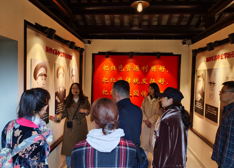 兴化沙沟古镇历史悠久,文化底蕴极厚,有着独特的红色教育基地,如:抗战时期的沙沟市委市政府旧址、被誉为革命熔炉、育才园地的新四军“苏中公学”旧址。本次活动在带领女教工欣赏里下河地区美丽风景、陶冶生活情操、释放工作压力的同时,引领女教工参观“苏中公学”旧址,瞻仰了如周奋、郑光耀等革命先烈的事迹,接受红色革命的教育洗礼,体验了党的领导下的乡村巨变。老师们一致表示,本次活动有助于构建和谐学院,推动学院高质量发展。