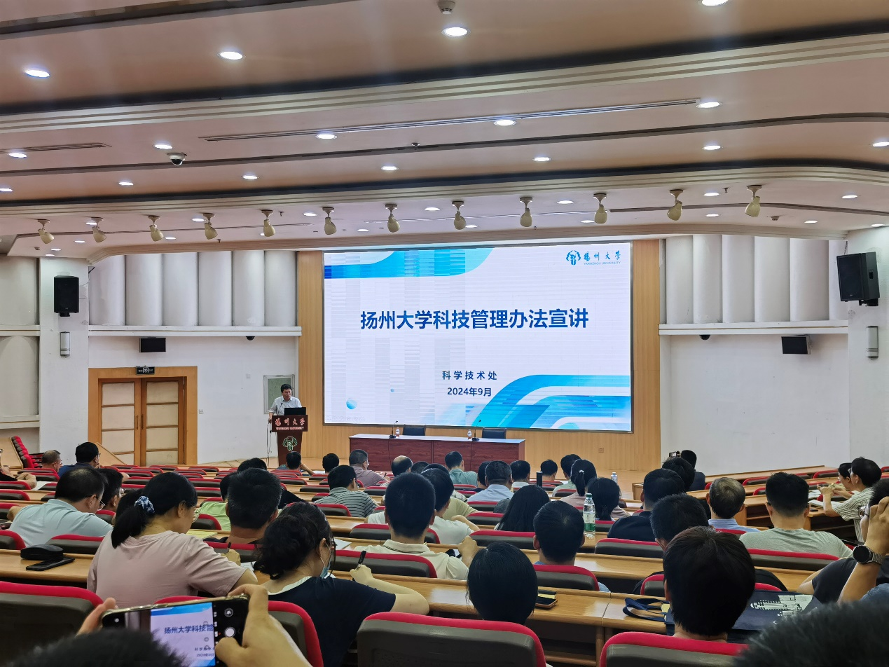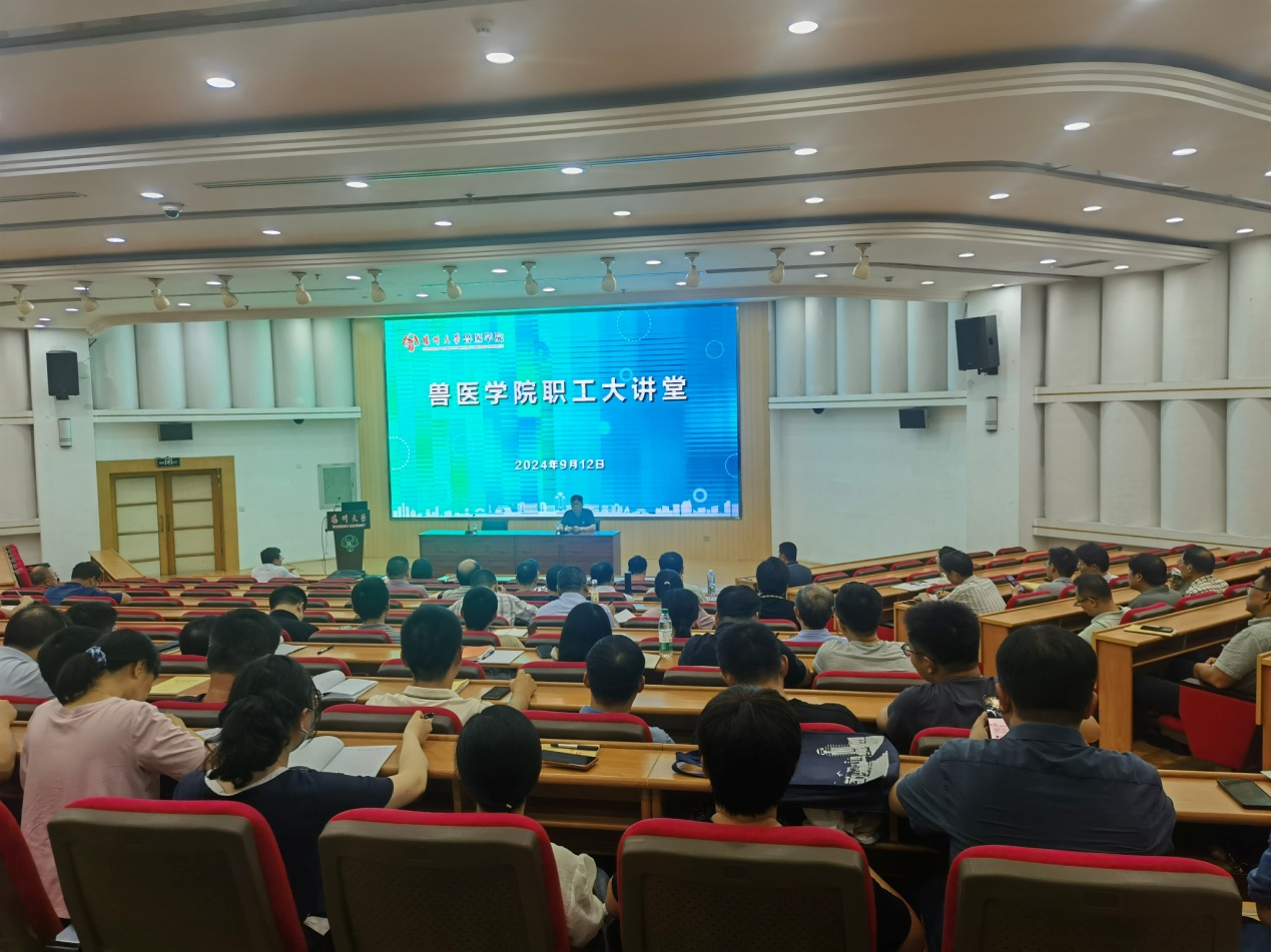 9月12日,扬州大学兽医学院在逸夫图书馆报告厅开展了职工大讲堂,邀请校科技处赵海涛副处长作“扬州大学科技管理办法宣讲”专题报告,全院160余名教职工参加了此次报告会。