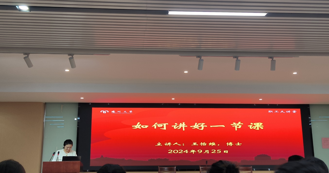 2024年9月25日下午,商学院工会在学院行政楼一楼报告厅举办职工大讲堂之新教师教学培训活动《如何讲好一节课》,活动邀请到在第四届江苏省高校教师教学创新大赛新教师赛道中省级特等奖获得者王怡维博士给2022-2024年新进教师进行培训。王博士先从扎实的课、充实的课、丰实的课、平实的课与真实的课等几个方面讲解一堂好课的标准与表现。然后,王博士又通过备课、课前导入、课中统学、课后练习、互动与反馈、总结与反思等方面跟新教师分享如何上好一堂课的经验。新教师反馈,职工大讲堂举办的讲好一节课活动,非常有效的帮助他们适应和积累在教学中的实践性经验。