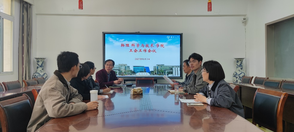 10月11日下午,物理科学与技术学院工会在学院会议室召开工会工作会议,工会主席陈海涛及全体工会委员参加会议。