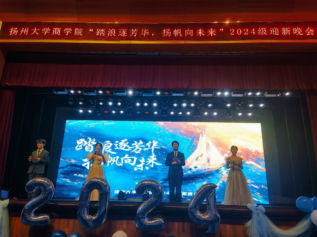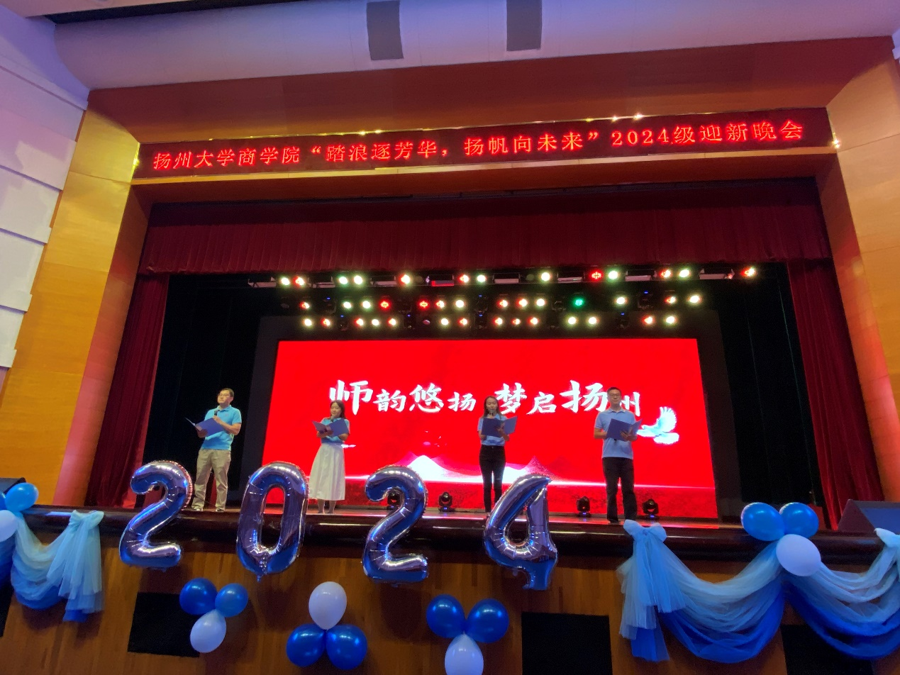 10月12日晚,商学院工会和院团委联合举办2024级迎新文艺晚会,晚会中青年教师表演节目与学生互动,既增进了师生的互动与情谊,又丰富了晚会的形式与内容。相信学院在全体师生的共同努力下,必将迎来更加美好的明天!