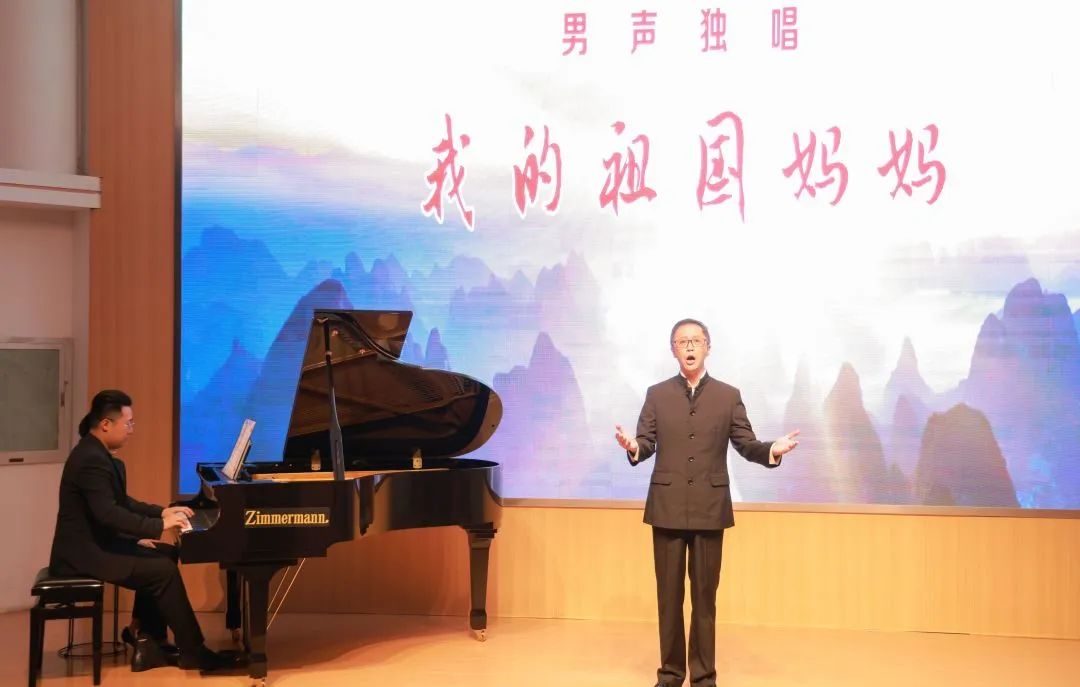 姚霆老师的男声独唱《我的祖国妈妈》由付龙老师伴奏,是在1979年改革开放的背景下创作的,祖国百废待兴,大批海外的游子渴望回国奉献出自己的力量。