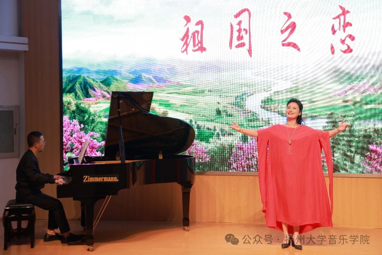 邵萍老师的女声独唱《祖国之恋》由周群老师伴奏,歌曲的旋律优美流畅,歌词直抒胸臆,情感真挚热烈,表达了人们对祖国的深厚感情。