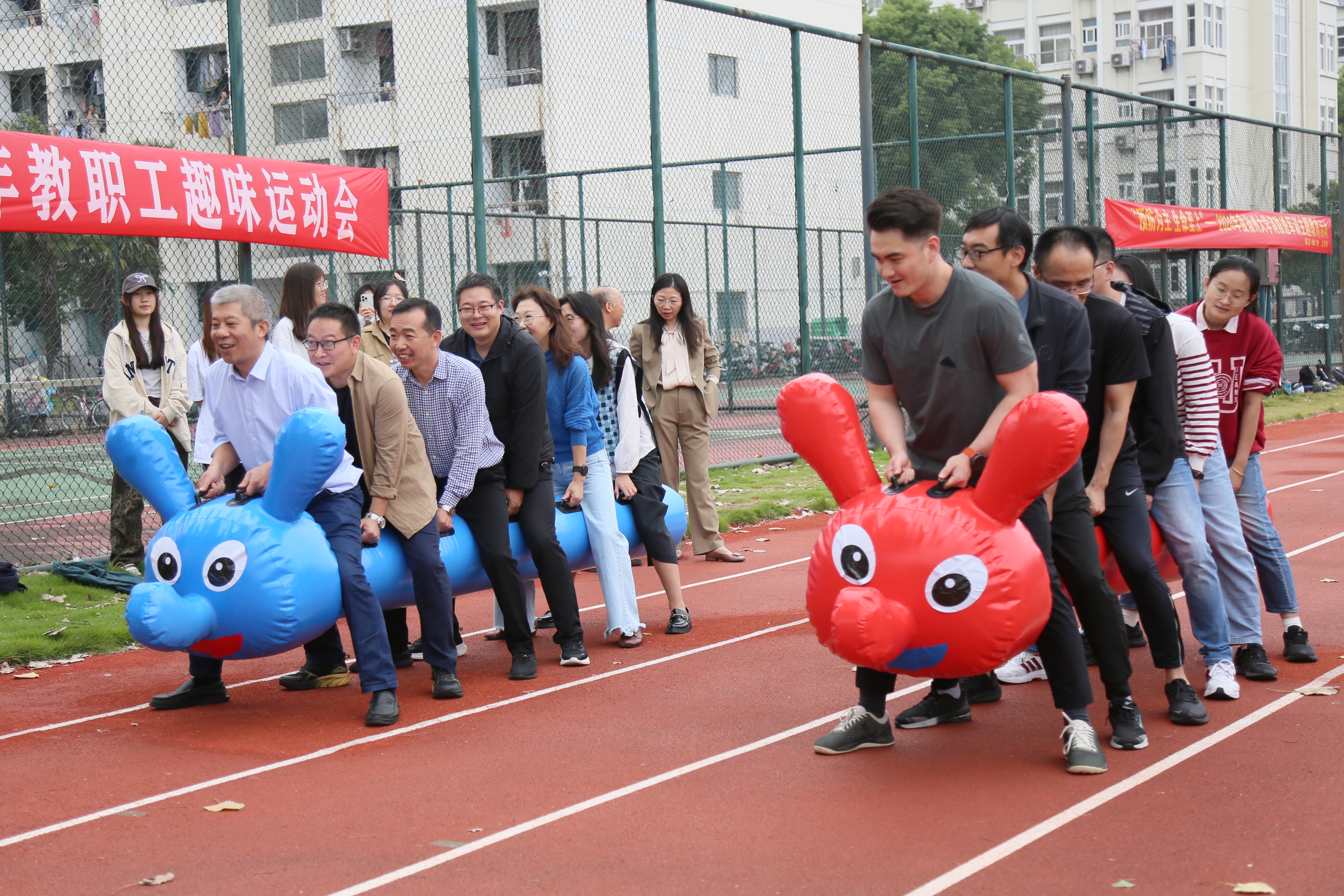 本次趣味运动会的项目设置丰富多样,赛场上,老师们团结协作、奋勇争先,积极投入到各项比赛活动中。通过这次活动,老师不仅体验了运动的乐趣、涵养了身心,更感受到团队合作的重要性。相信在未来的工作和学习中,这种团结协作的精神将会继续发扬光大。