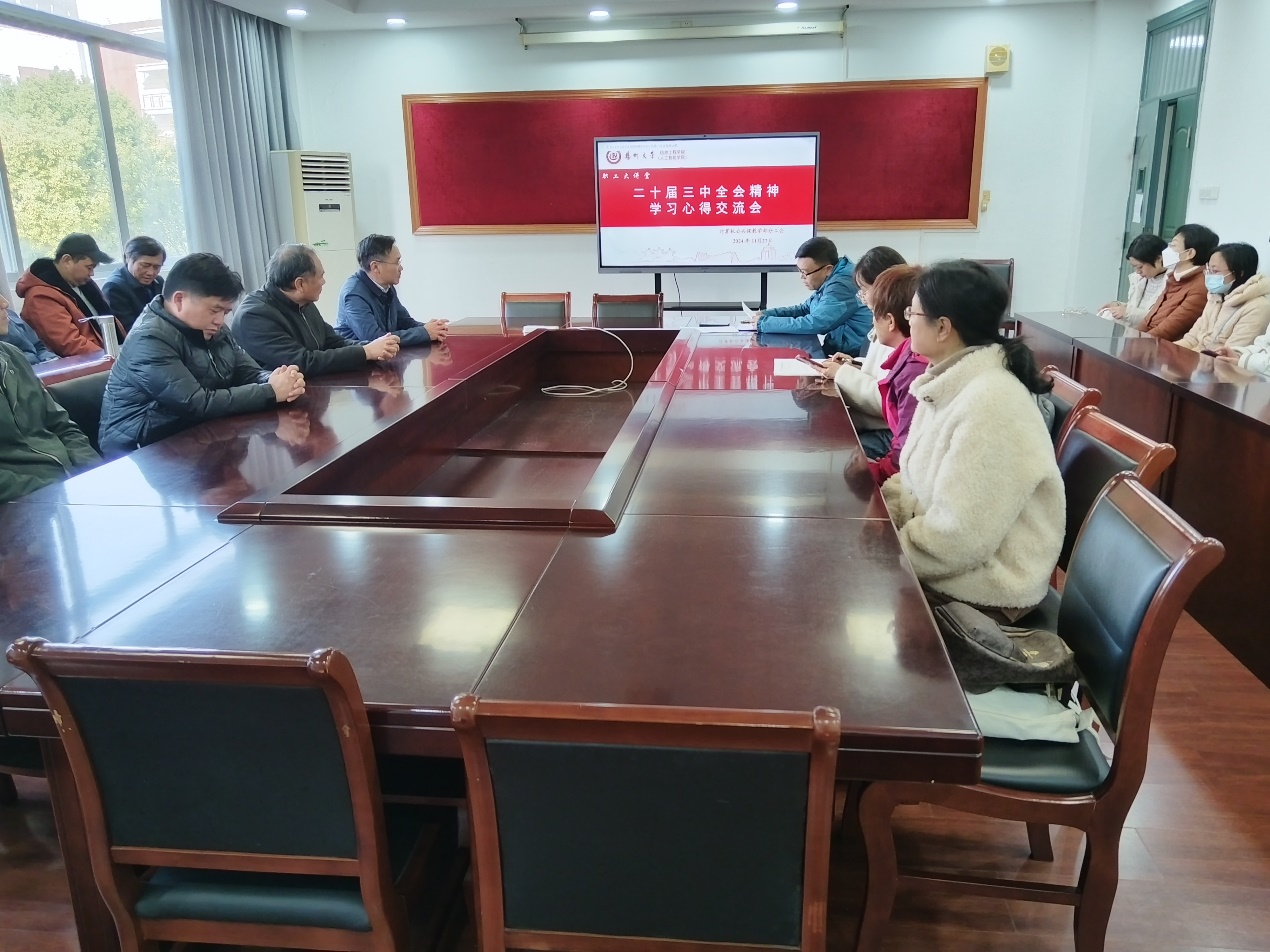 11月27日下午,学院各专业部举办党的二十届三中全会精神学习心得交流会职工大讲堂活动,活动由各专业部主任主持。