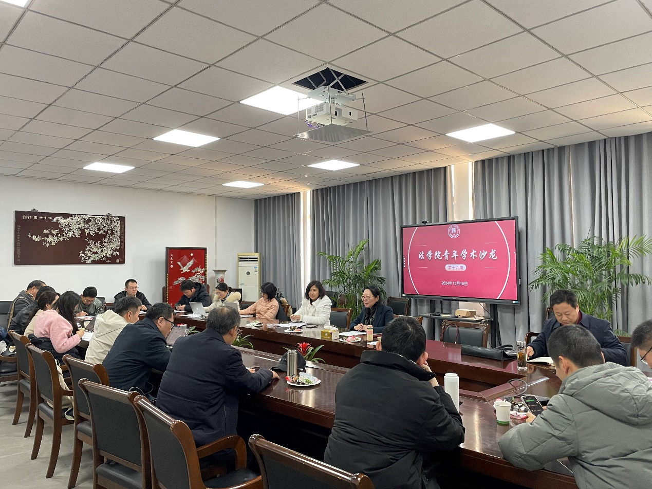 12月18日下午,法学院工会举办“法学院青年学术沙龙”。本次沙龙邀请了《学海》编辑部主编毕素华参与研讨。沙龙由副院长(主持工作)曲昇霞教授主持。在沙龙研讨环节,首先由毕主编介绍了《学海》期刊的投稿情况和投稿技巧。沙龙第二个环节,青年教师踊跃将投稿的论文提交大家交流,互相研讨改进措施。
