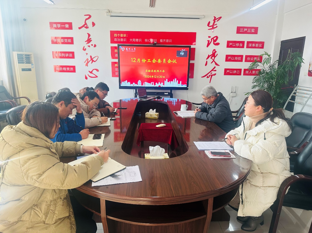 2024年12月20日下午,实验农牧场召开工会委员会会议,实验农牧场党总支书记马雷参加会议,工会主席吴慧主持会议。