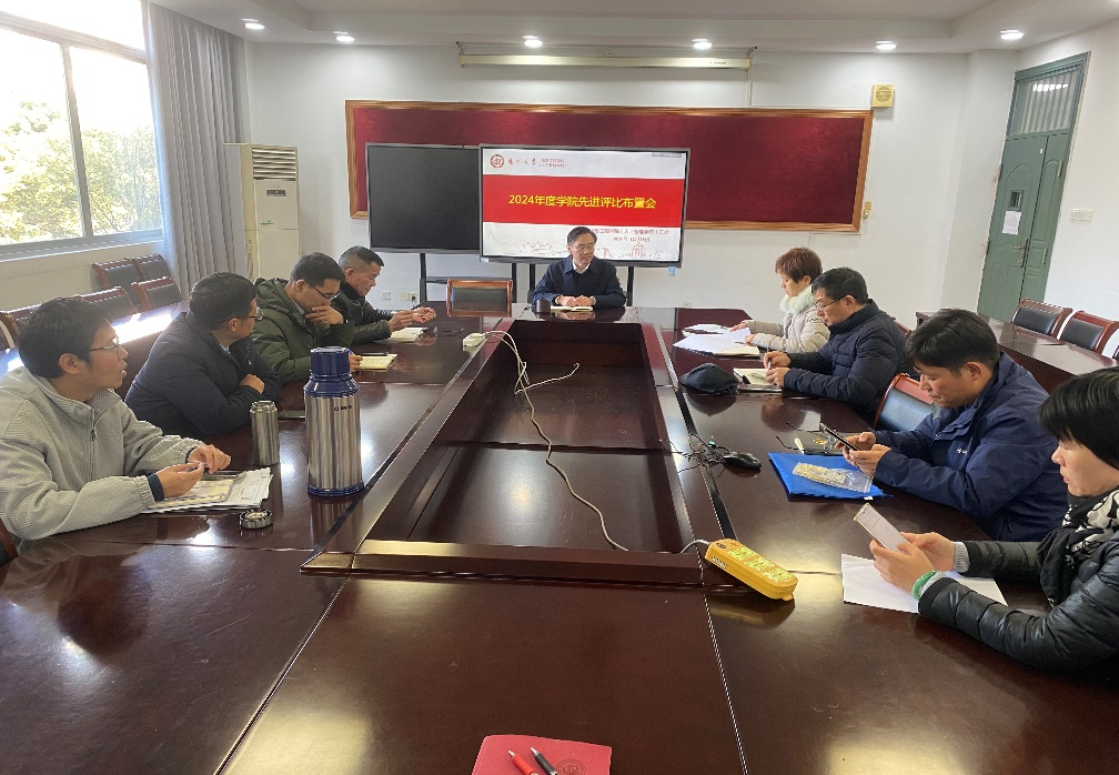 12月18日下午,学院工会在2222会议室召开2024年度先进评比布置会。院党委副书记崔益军出席会议并讲话。院工会主席潘钧、副主席罗家奇以及工会委员出席会议,会议由潘钧主持。