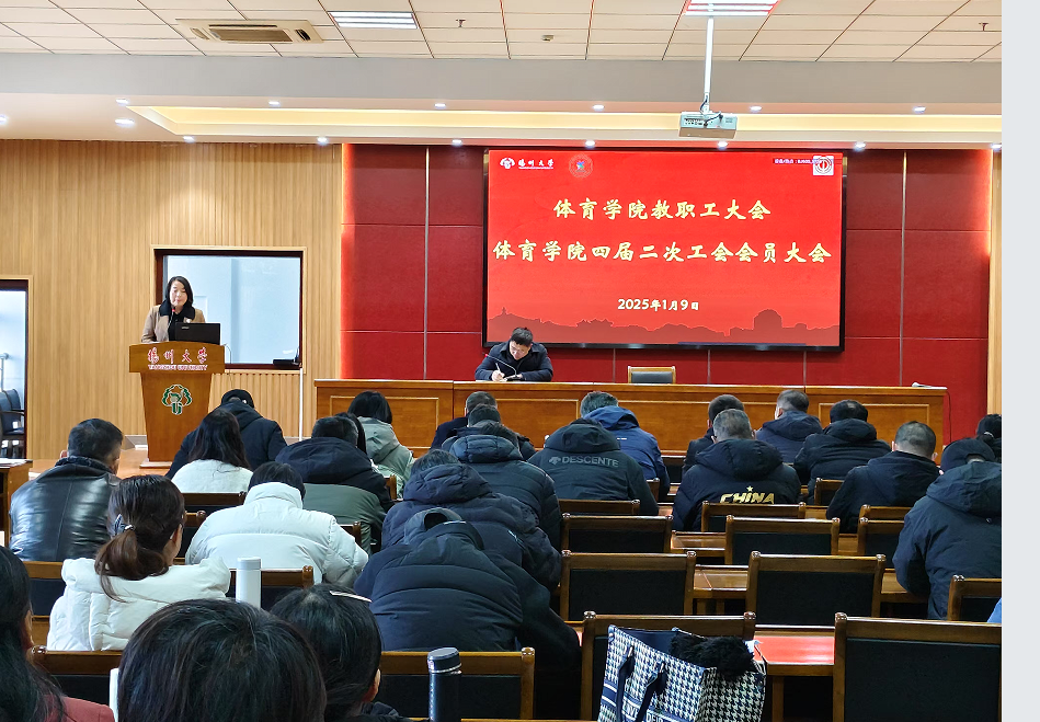1月9日下午,体育学院在文体馆302报告厅召开全院教职工代表大会和四届二次工会会员大会。全体院领导和教职工参加了大会,会议由院党委书记虞强主持。
