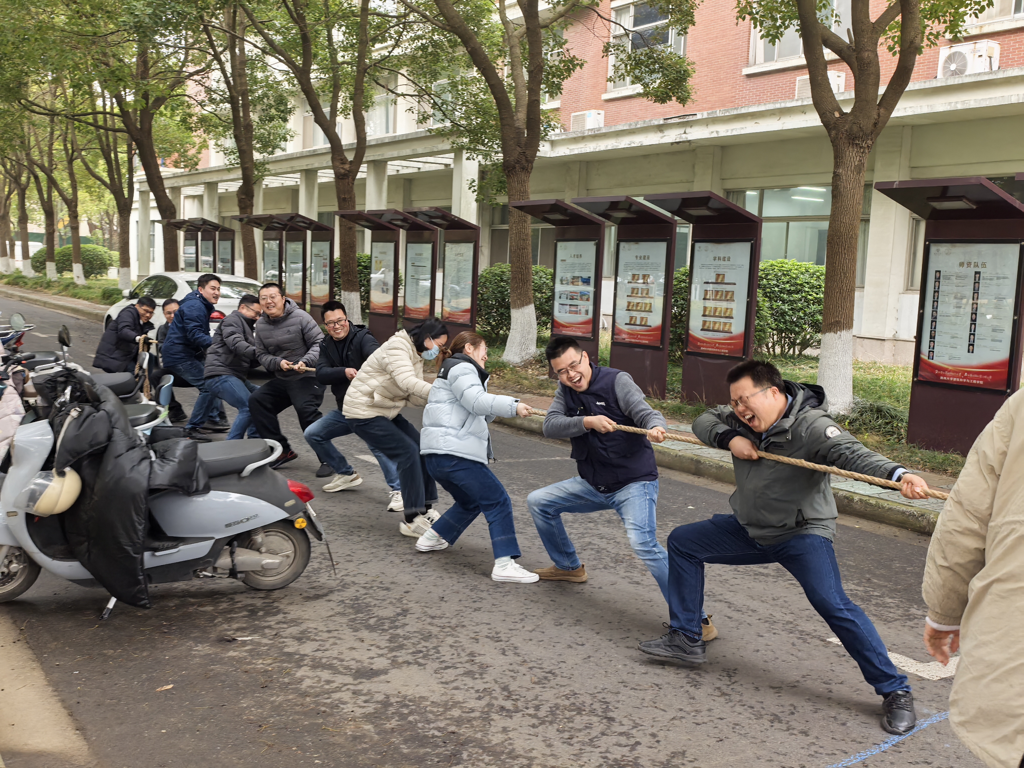 3月12日下午,建工学院举办教职工拔河比赛。多名教职工激情参赛,现场气氛紧张而活跃。