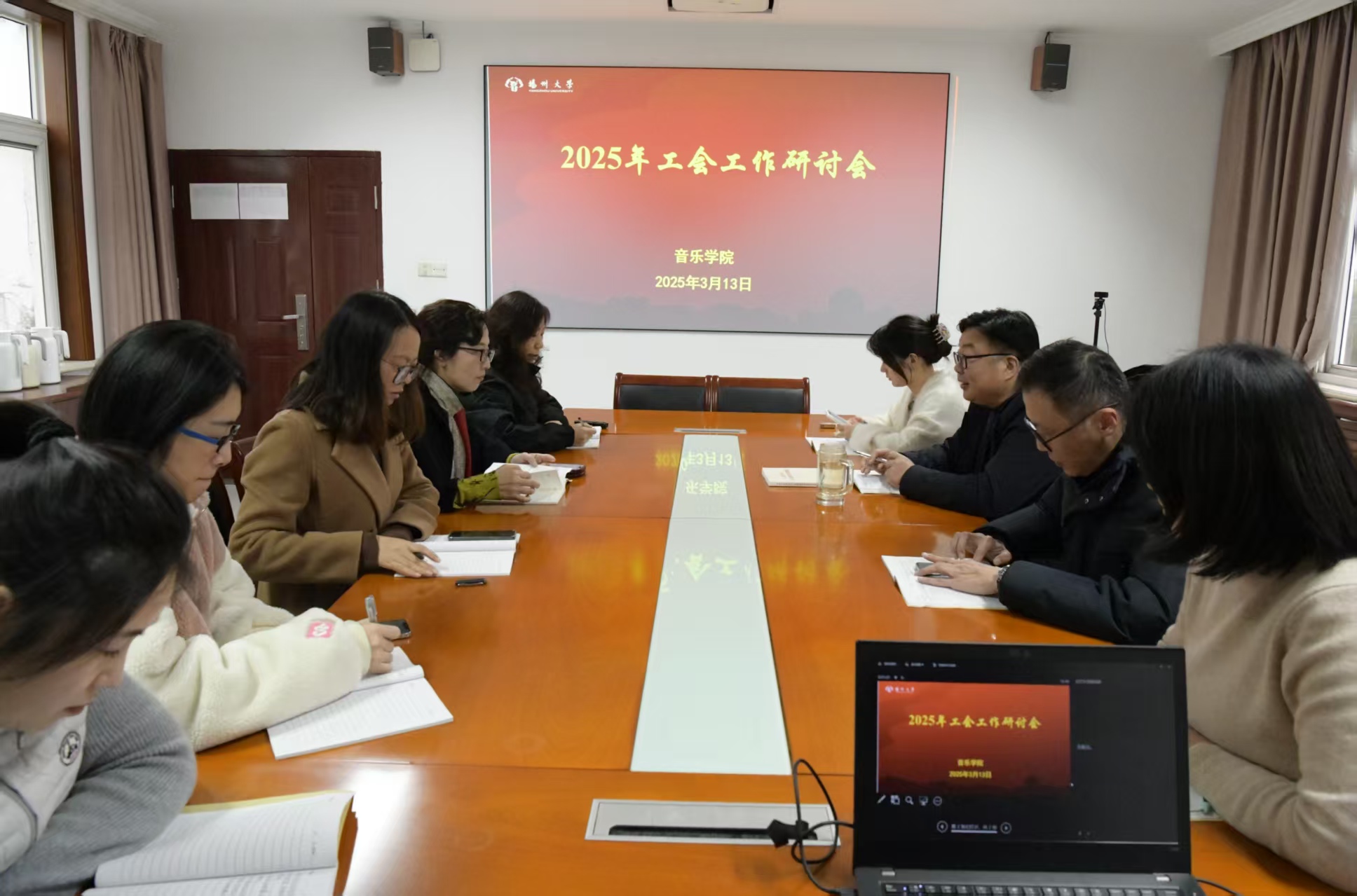3月13日下午,音乐学院召开2025年学院工会工作研讨会,院党委书记房东升、副院长姚霆、院工会委员参加了会议,会议由院工会主席韩乾主持。
