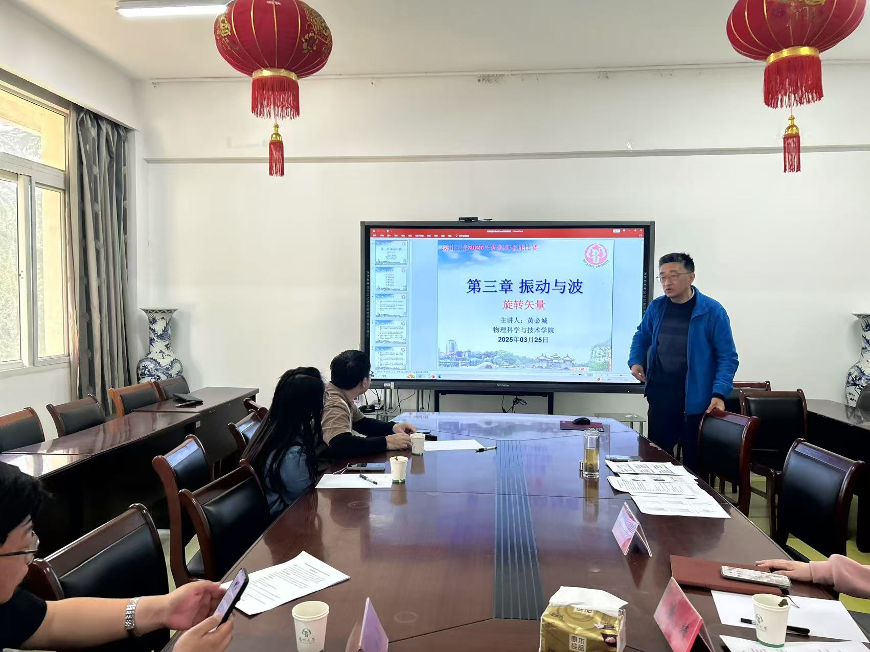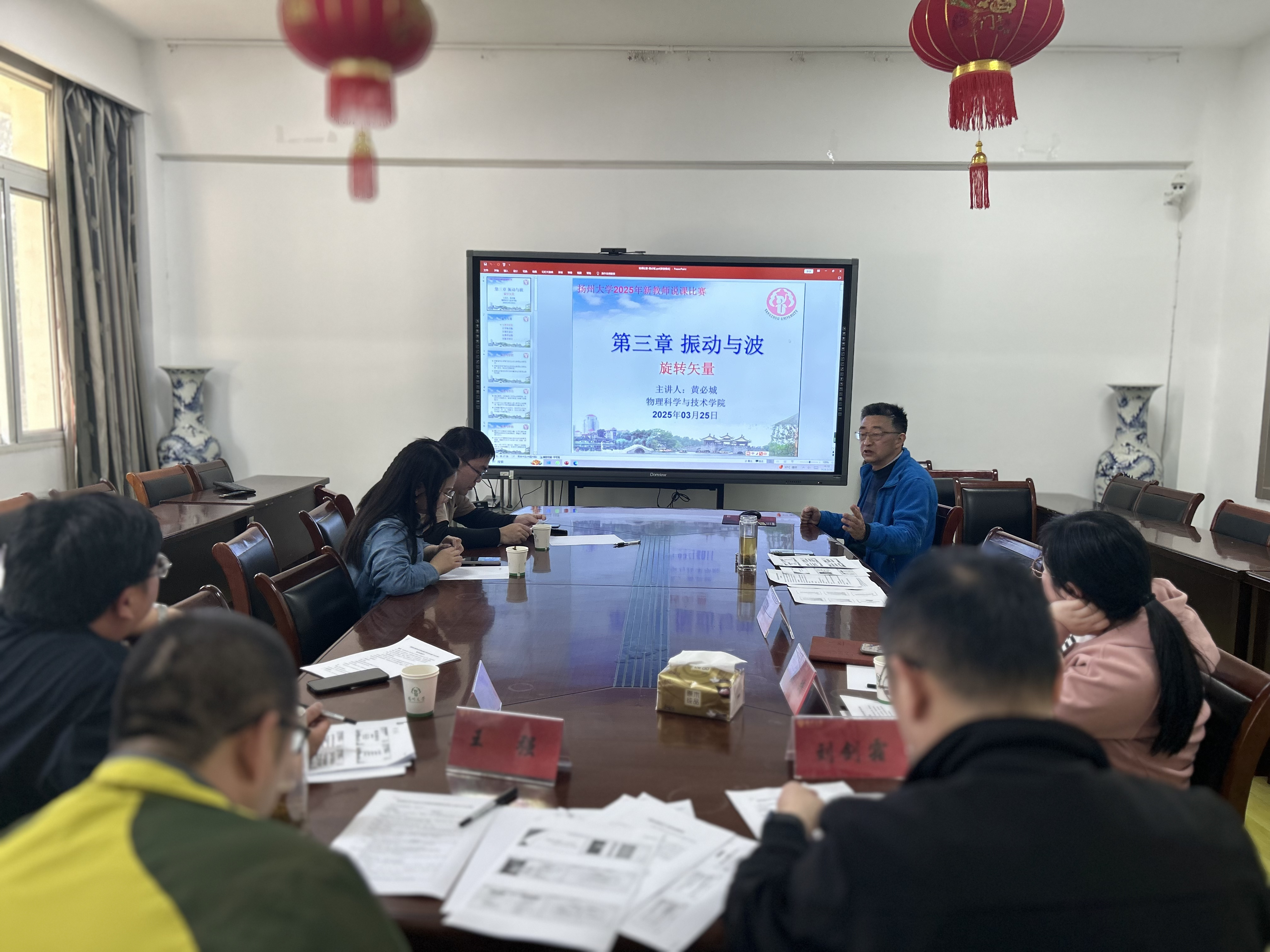 3月25日下午,物理科学与技术学院在213会议室举办了新入职教师汇报课活动。教学副院长王伟、校教学督导刘剑霜及各系部主任全程参与指导,黄必城、熊国欢两位老师进行了教学展示。