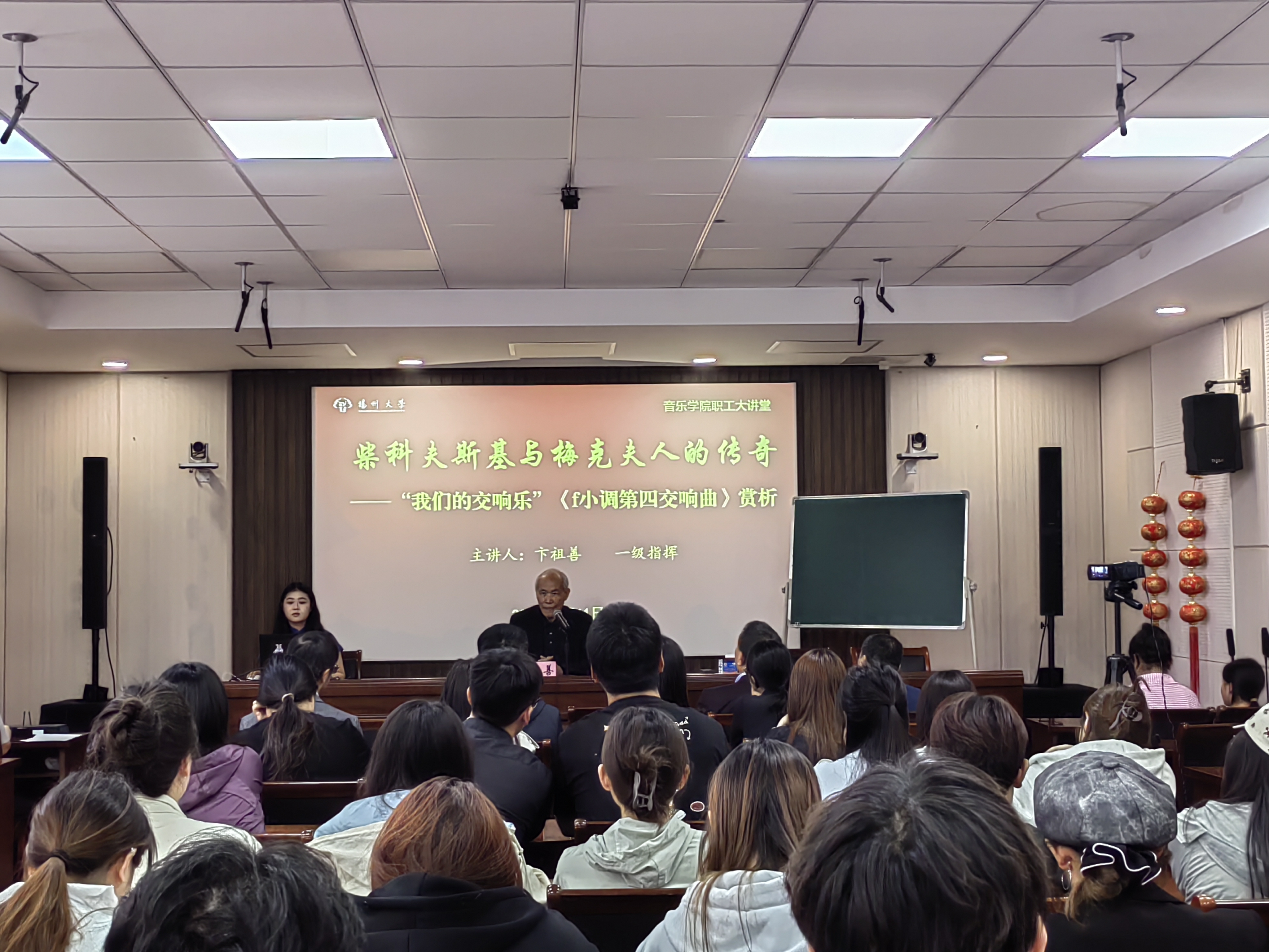 4月11日下午,音乐学院邀请一级指挥卞祖善教授,开展主题为《柴科夫斯基与梅克夫人的传奇——“我们的交响乐”赏析》学术讲座,本次讲座由副院长姚霆主持,院内外近百余名师生和音乐爱好者参加。