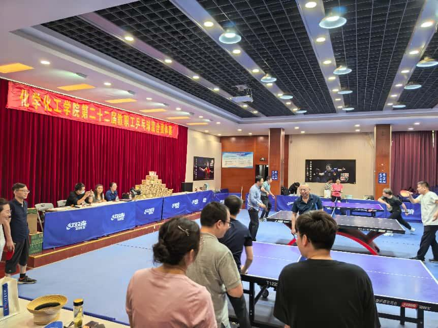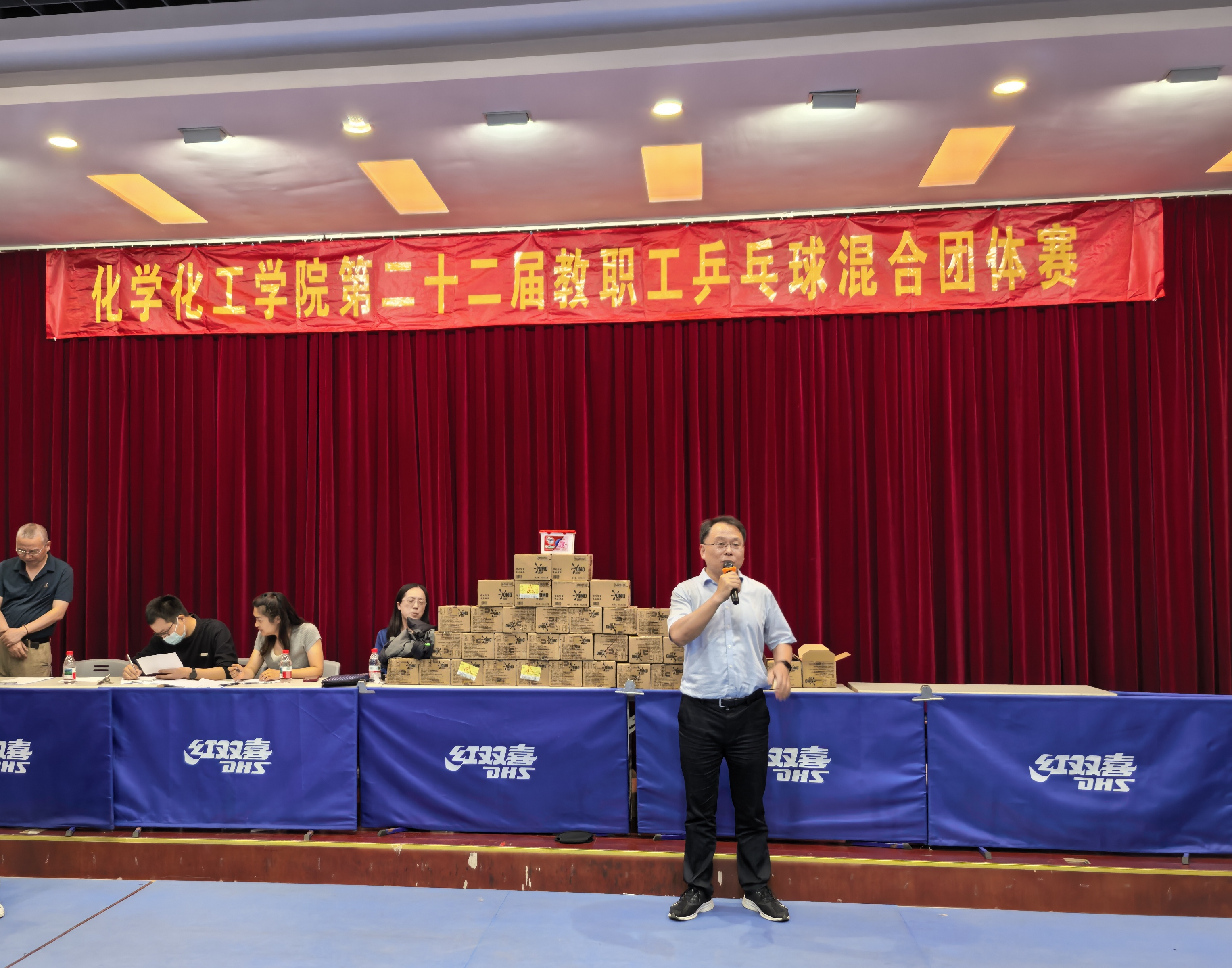 为丰富教职工的业余生活,增强团队凝聚力,展现教职工积极向上的精神风貌,2025年5月14日,化学化工学院在瘦西湖校区教工活动中心隆重举行第二十二届教职工乒乓球混合团体赛。院党委书记娄金海参加活动,并宣布比赛正式开始。