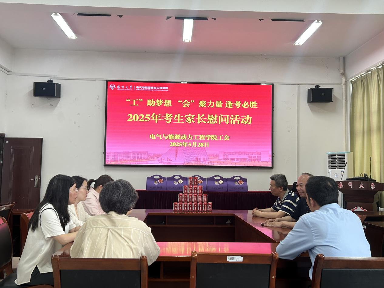 为切实关爱教职工家庭,助力中高考学子圆梦,5月28日上午,电能学院工会在知行楼S533会议室举行了“‘工’助梦想 ‘会’聚力量 逢考必胜”2025年考生家长慰问活动。院党委书记张陟遥、工会主席吴桂峰与学院考生家长代表共同参与了这场温情洋溢的座谈会。