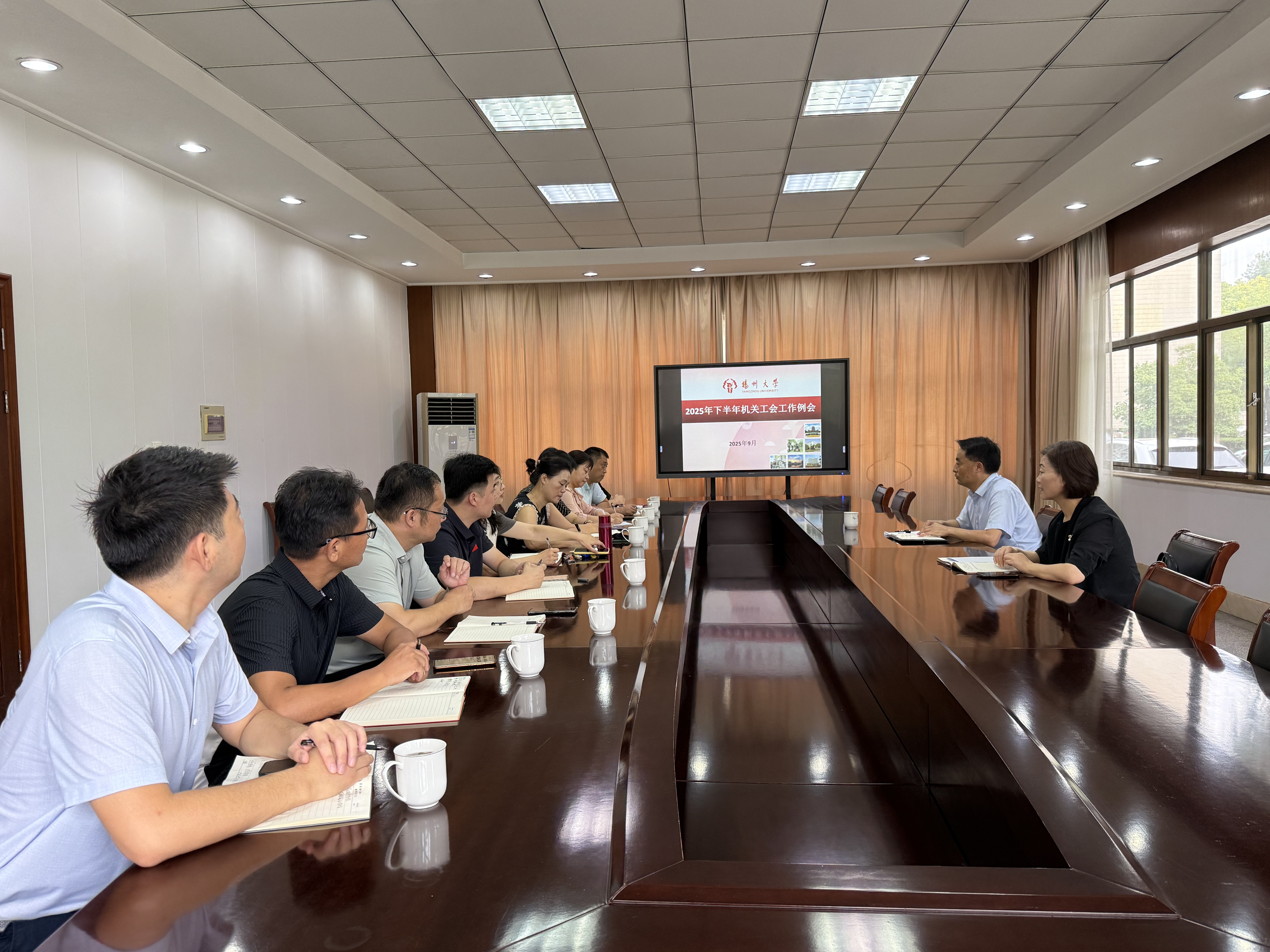 9月28日上午,机关工会在行政楼118会议室召开2025年下半年工作例会。机关工会主席钱厚斌主持会议,机关党委书记蔡丽娅出席会议并讲话。