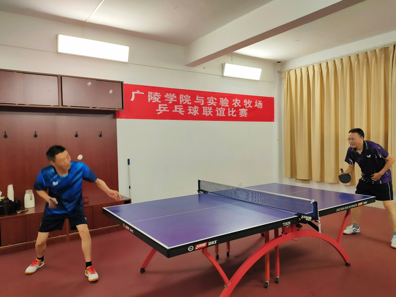 10月11日下午,实验农牧场与广陵学院在食品产业园场区举办了乒乓球联谊赛。