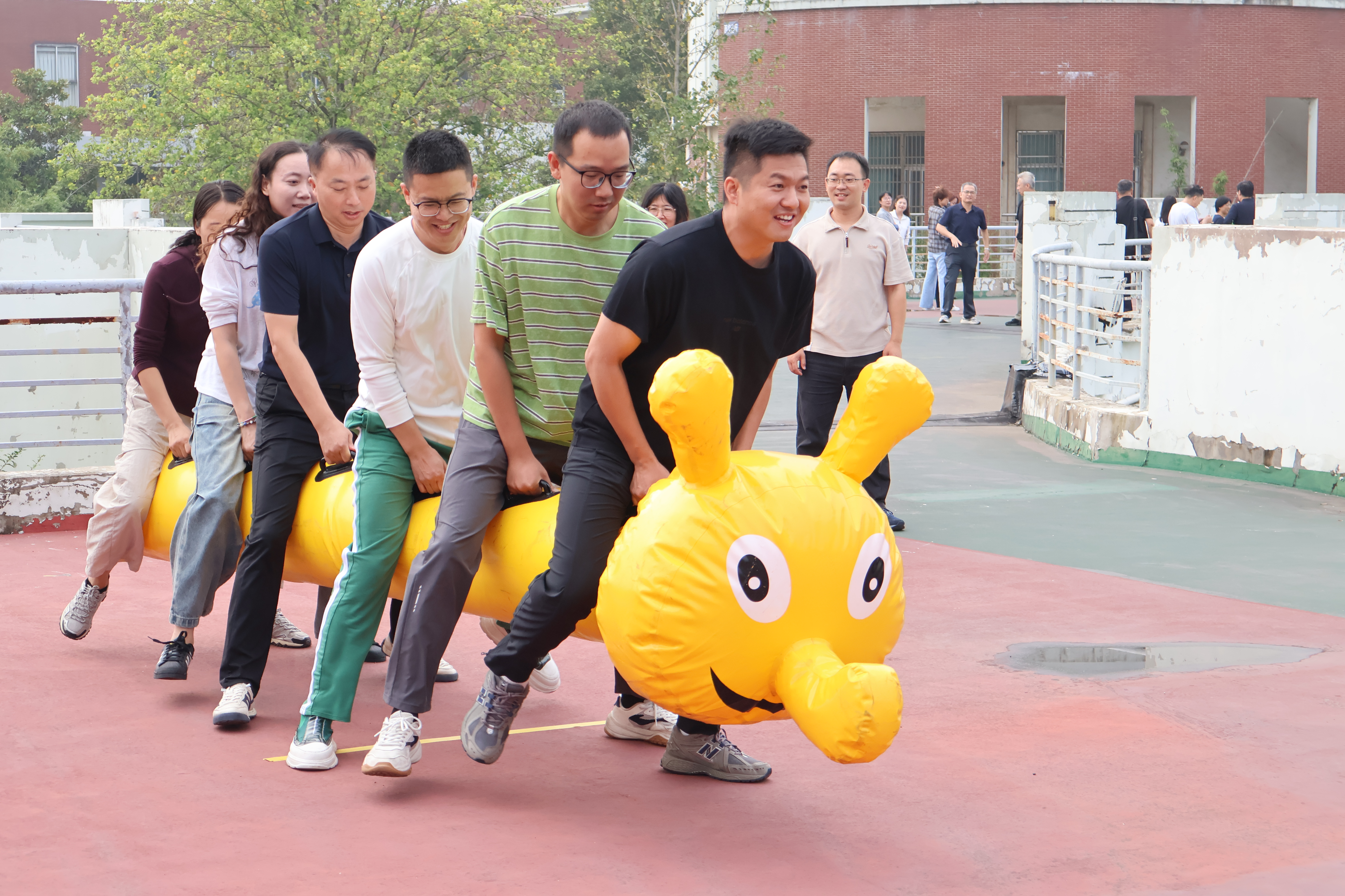 趣味运动会在学院行政楼二楼大平台举行,共设置打保龄球、抢收抢种、毛毛虫竞速和快乐旋风跑四个项目。全院200名左右教职工参加此次趣味运动会。这些精心设置的比赛项目既考验选手们的身体素质,又营造出了欢快愉悦的热闹场面,体现了本次运动会的趣味性、群众性以及团队协作性。通过趣味运动会比赛,促进了教职工之间的沟通与交流,增强了集体团结奋进的凝聚力、向心力,展现了全院教职工积极进取、奋发向上的精神风貌。